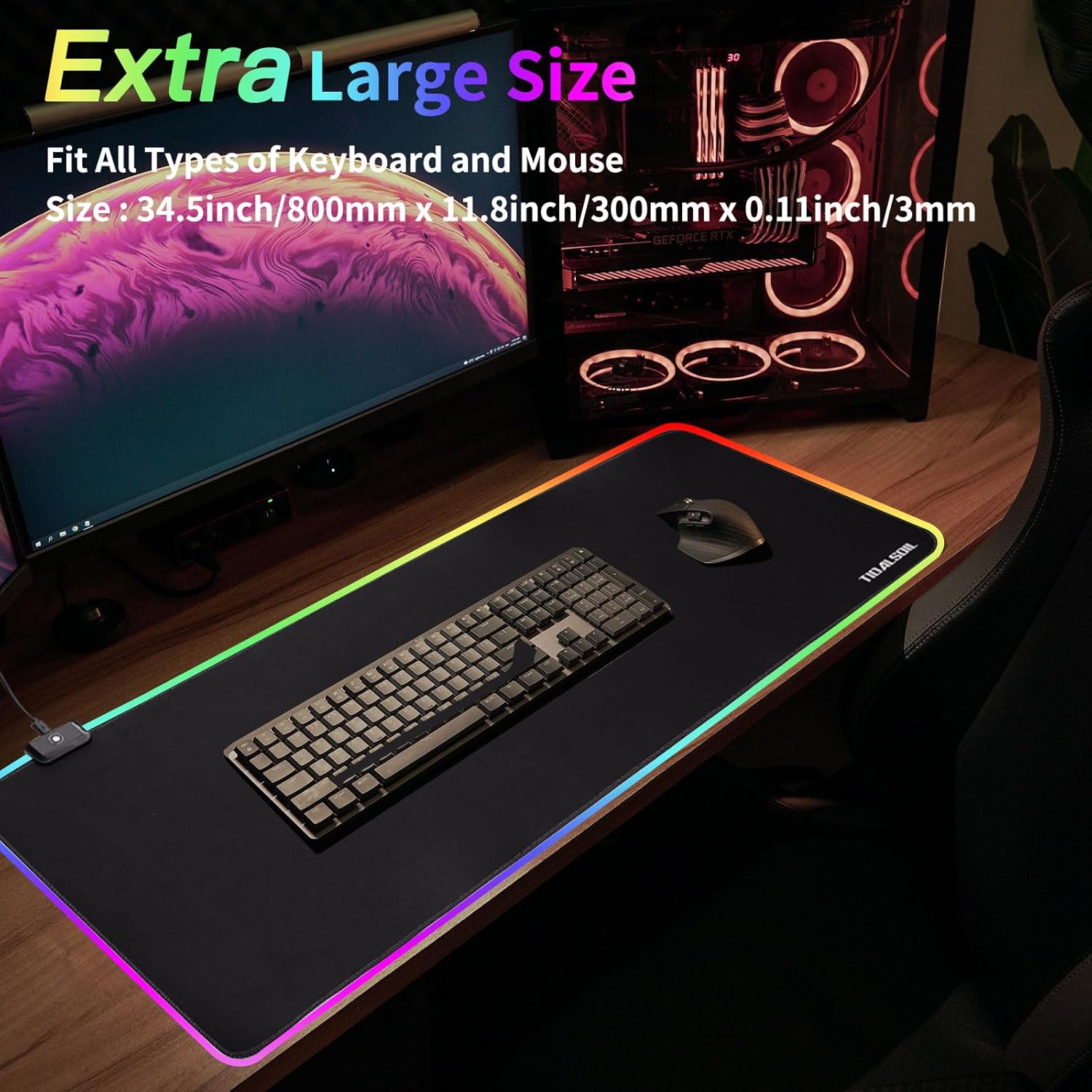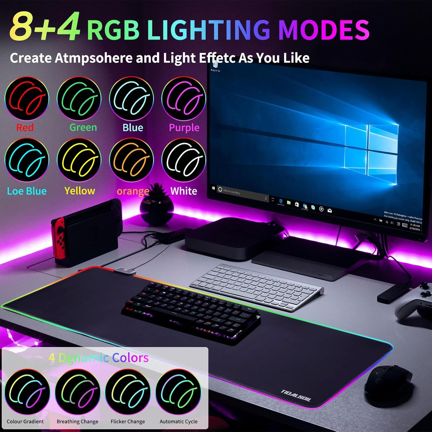 【12 Stunning RGB Light Modes】: Featuring 4 dynamic modes (Color Gradient, Breathing, Flicker Change, Cycle Color) and 8 static modes, this gaming mouse pad offers vivid RGB lighting to create an immersive gaming atmosphere - all while ensuring your eyes remain comfortable. 【This product is manufactured in China. Due to recent changes in import regulations, pricing may be adjusted in the coming weeks.】