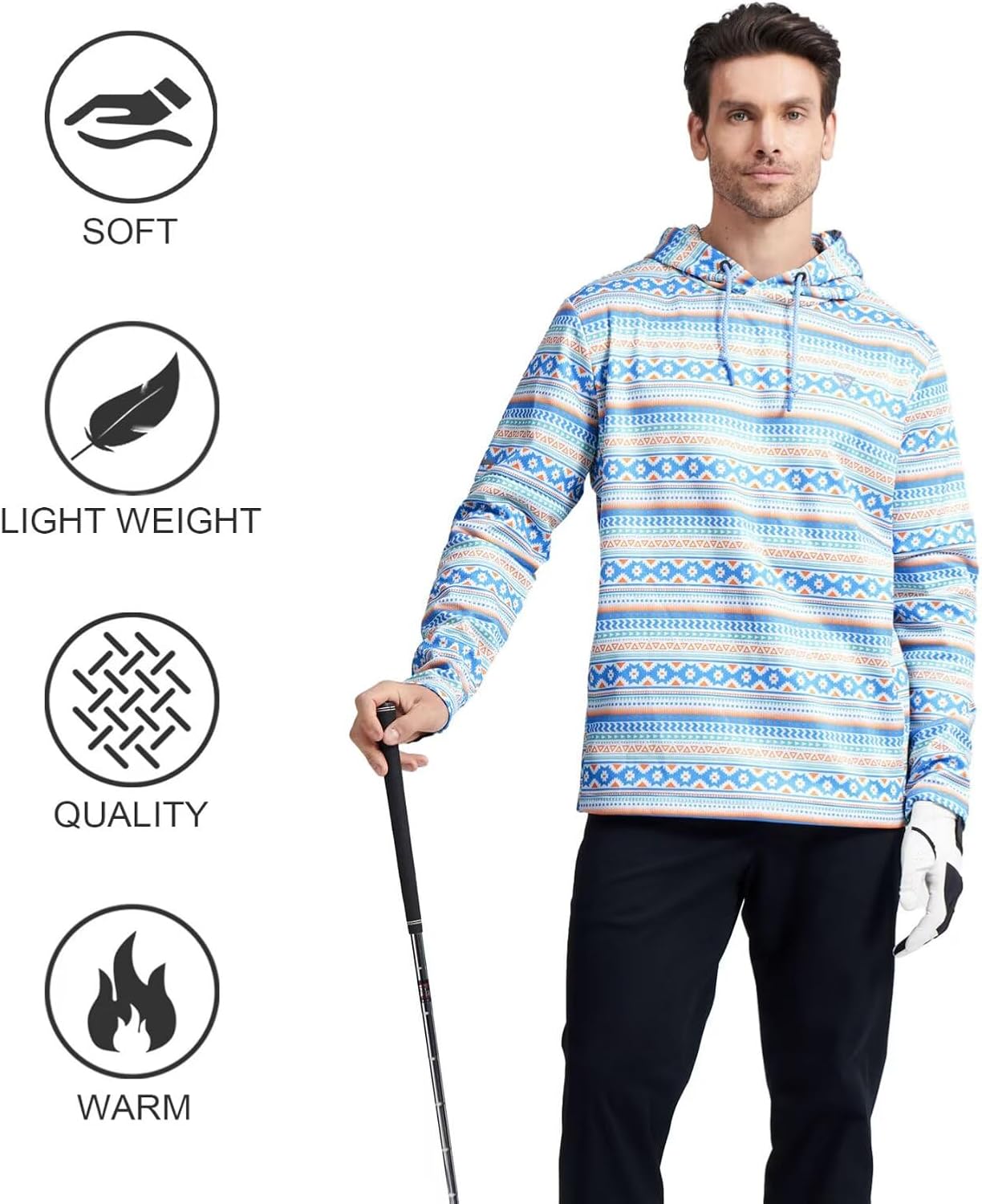 VERSATILE OCCASION: This golf men hoodies is perfect for golf, hiking, climbing, cycling, and other outdoor sports activities. It is also suitable for workout and casual daily wear and can be a great gift for husbands, father, family, boyfriends, or friends.