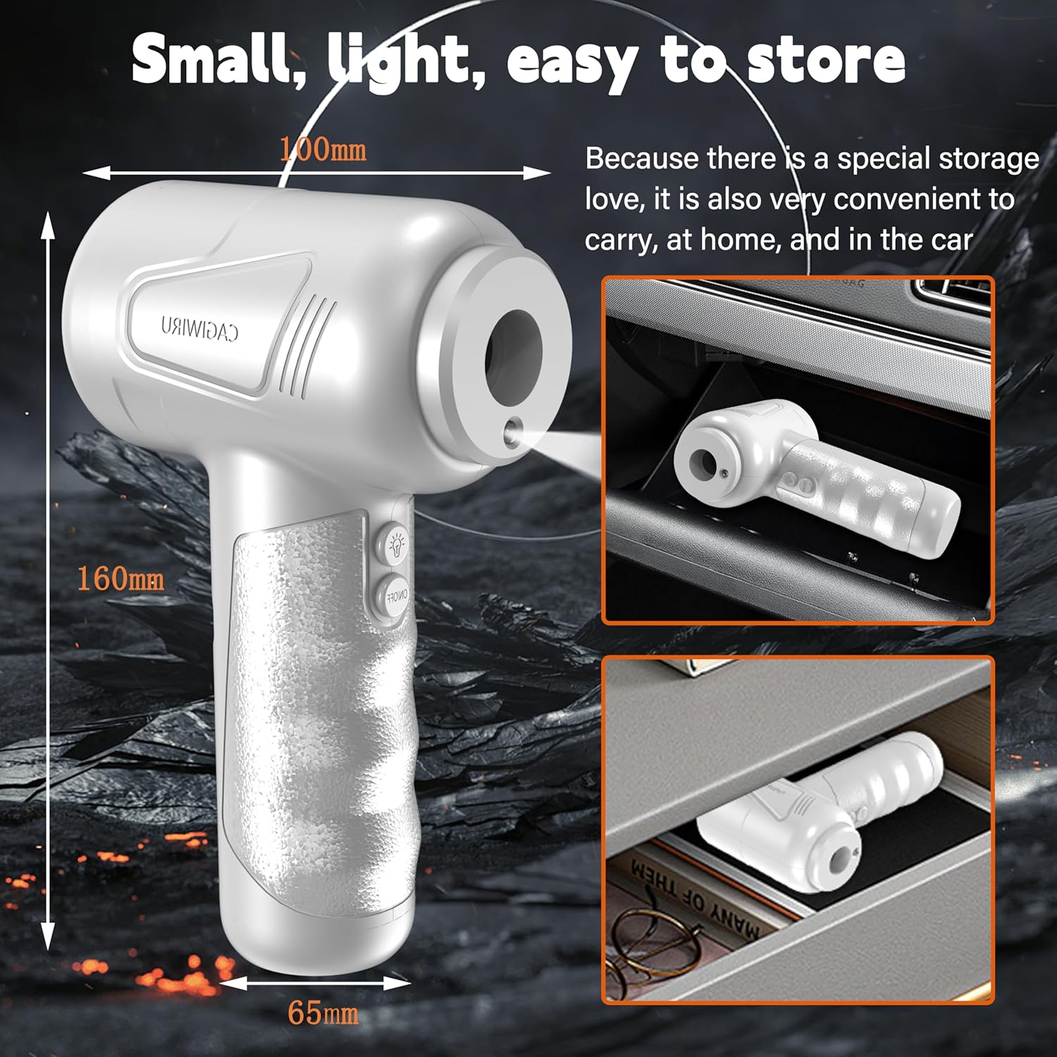 【Handy Design & Ultra Portable】Cordless air duster electric nozzle is Light weight and small size, design and comfortable to hold and space saving, convenient to carry around. You can put it in your room or inside the car without taking up space.