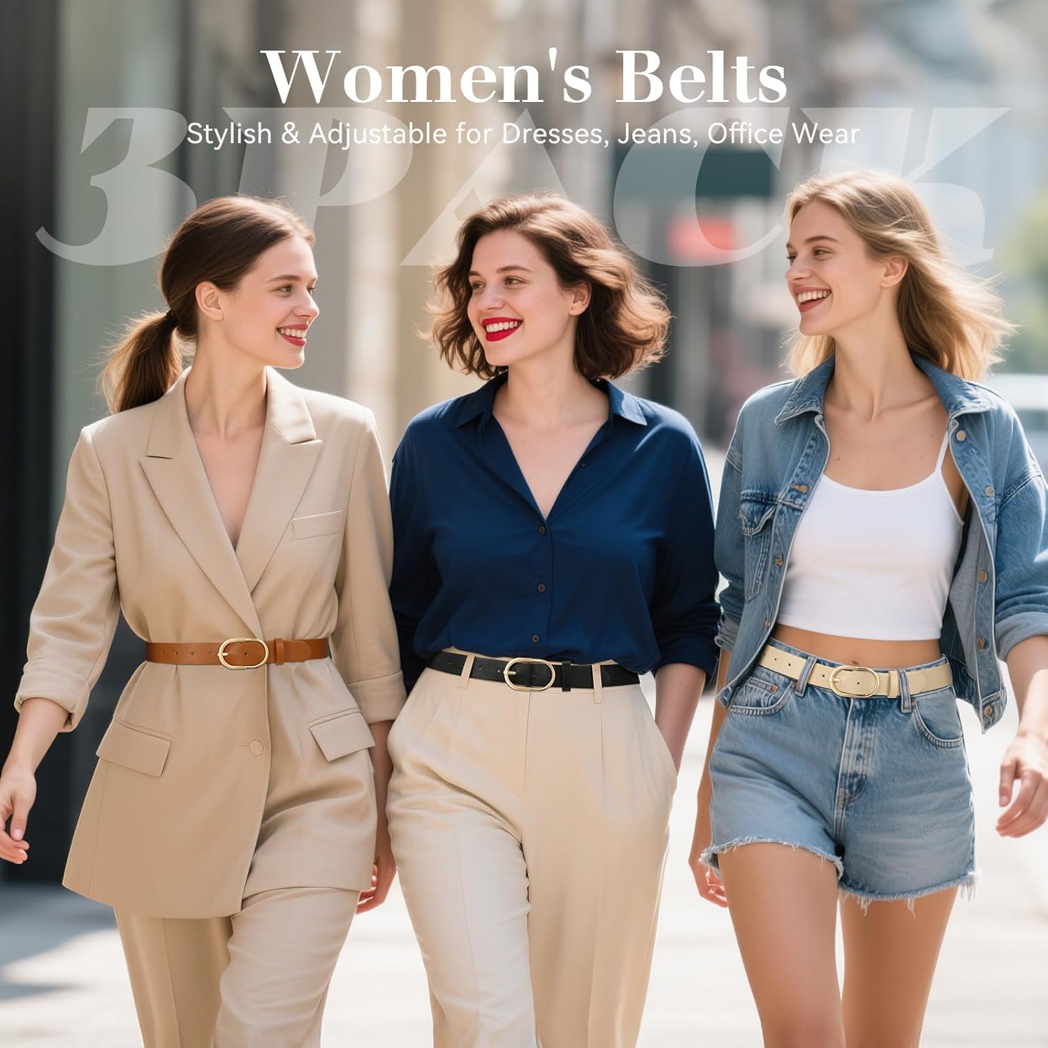 Featuring a shiny gold-finish metal curvy buckle, these fashion belts for ladies girls are the kind of classic style that'll go with practically any outfit. Perfect for jeans , casual trousers, dresses, coat or cardigan.