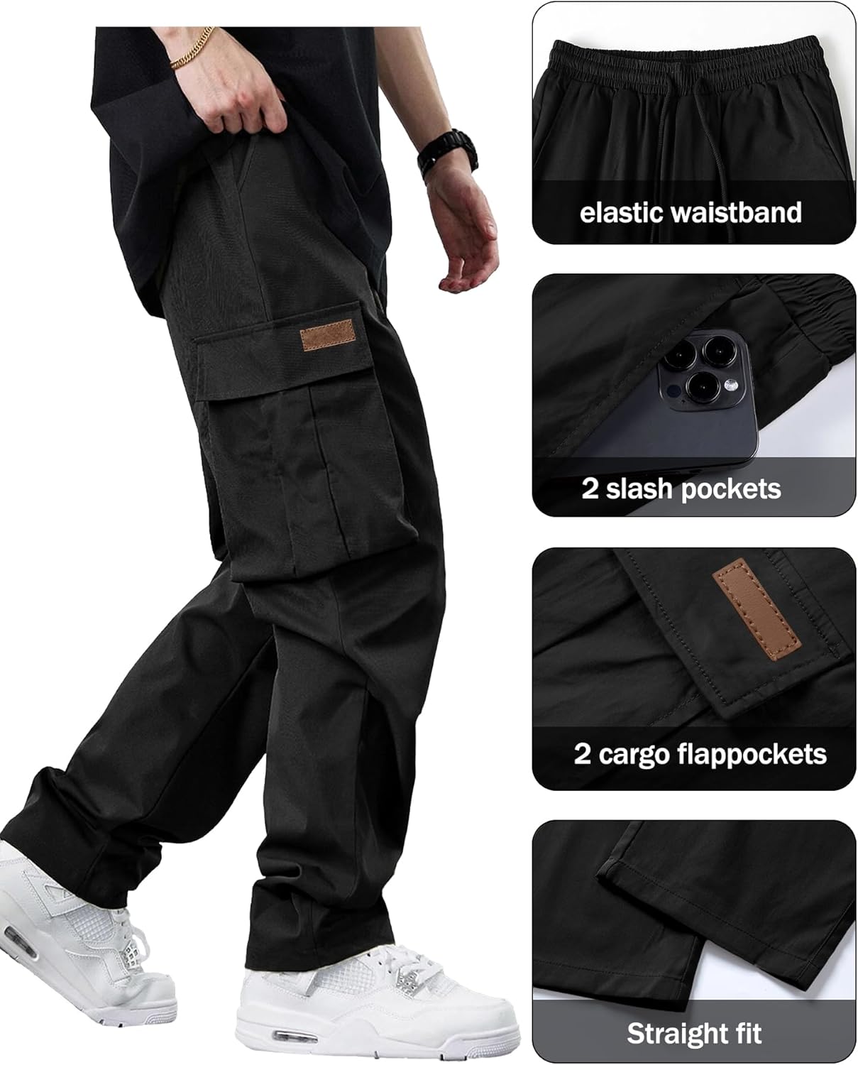 【DESIGN FEATURES】Outdoor joggers pants have utility elastic waistband and freely adjustable drawstring closure, which can ensure the comfort of waist.