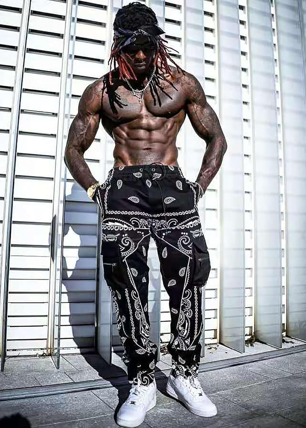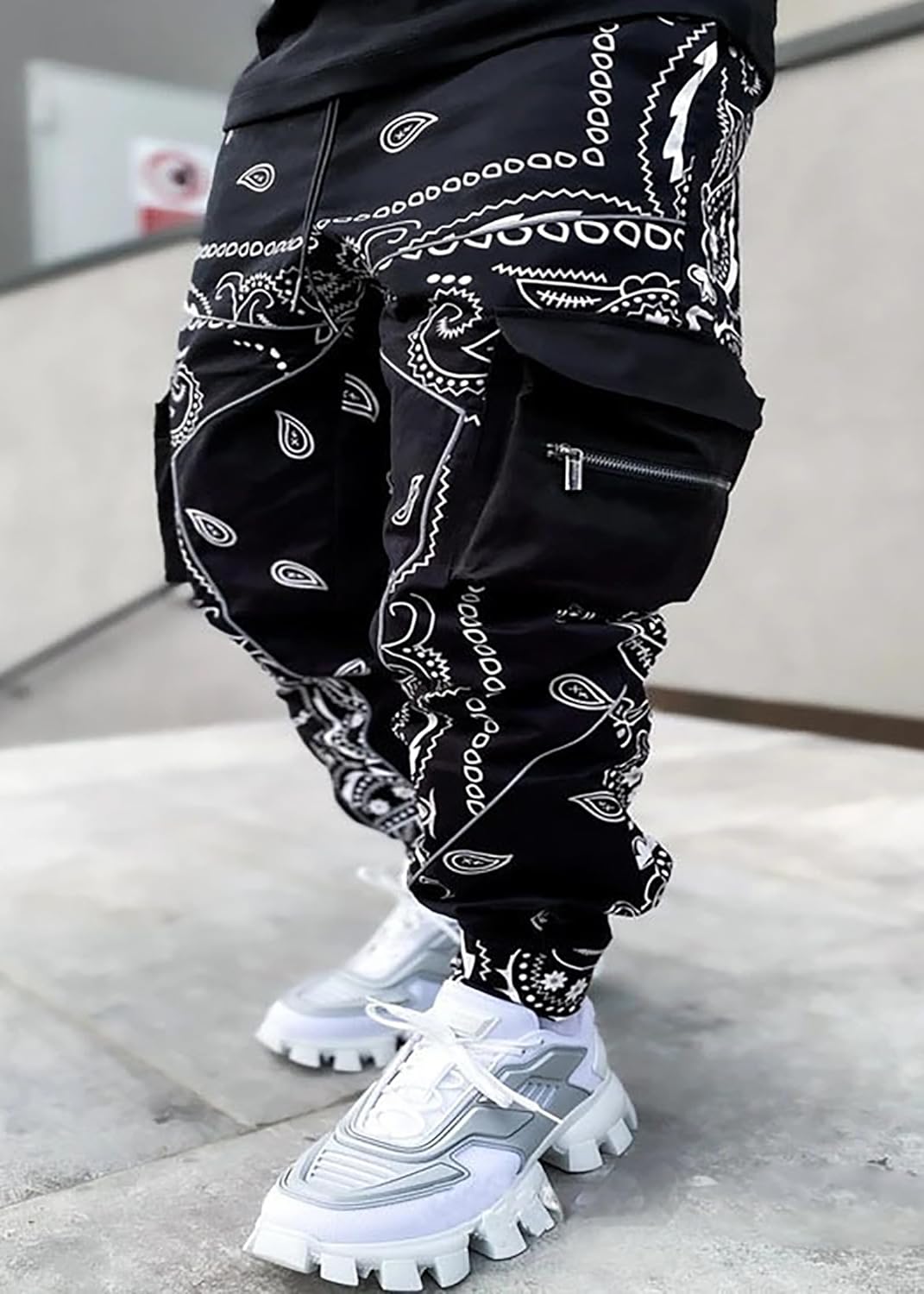 [STYLE DESIGN]*1)TAPERED FIT/REFLECTIVE STRIP/ADJUSTABLE ANKLE CUFFS *2)Casual pants with great style,sewn with unique 3D reflective strips,keeping you safer at night.*3)Multi-pocket design for your storage needs,for storing your cards, keys, headphones etc.