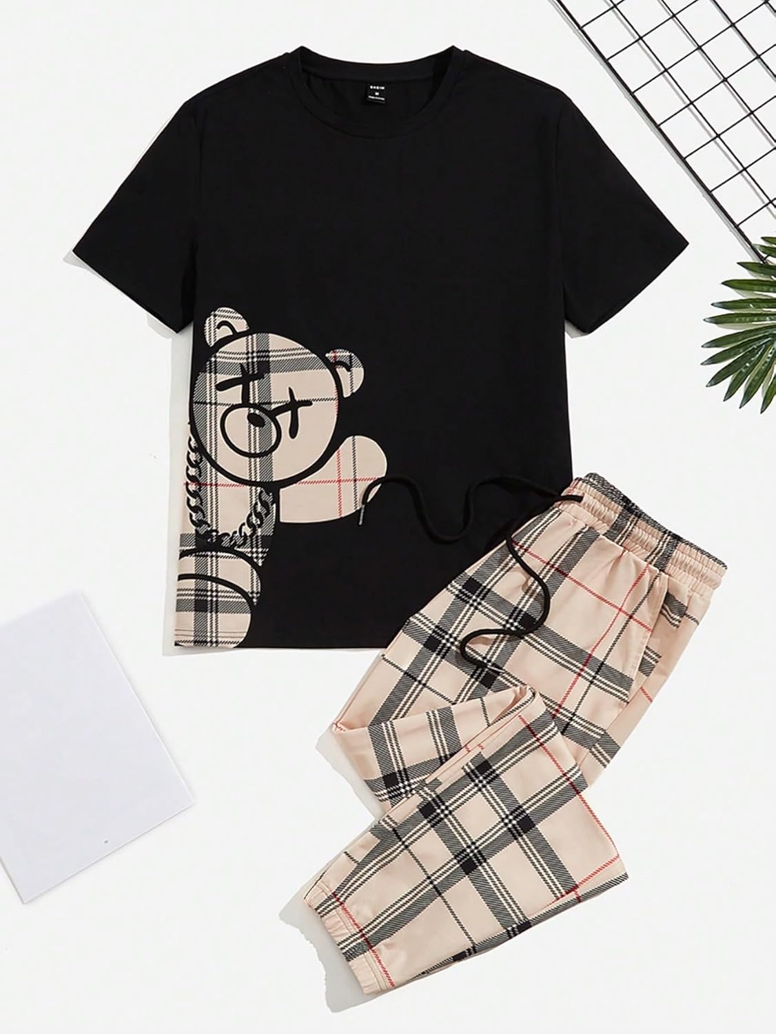 The men's graphic tees offer a playful, casual look, drawstring waist pants with classic plaid pattern, 2 side pockets, making you look more fashionable and charming