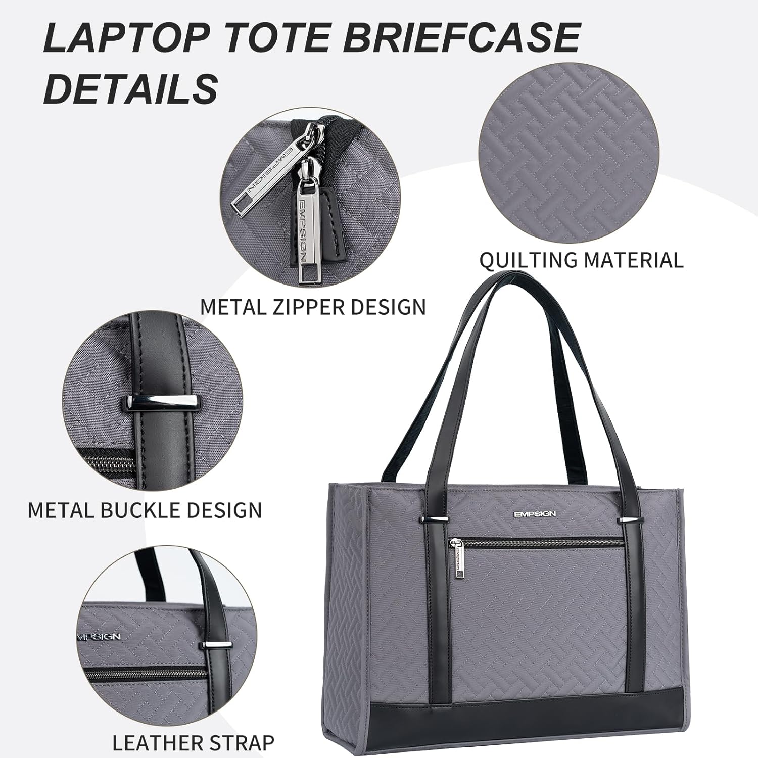 Durable & Stylish women tote bag: Empsign laptop bag made of high-quality quilted canvas and Durable leather, offers water-repellent and Wear resistance advantage, The exterior of the Tote bag adopts quilting technology, combined with metal locks, to convey a classic and fashionable appearance and feel, Stable bottom for better load-bearing backpack.