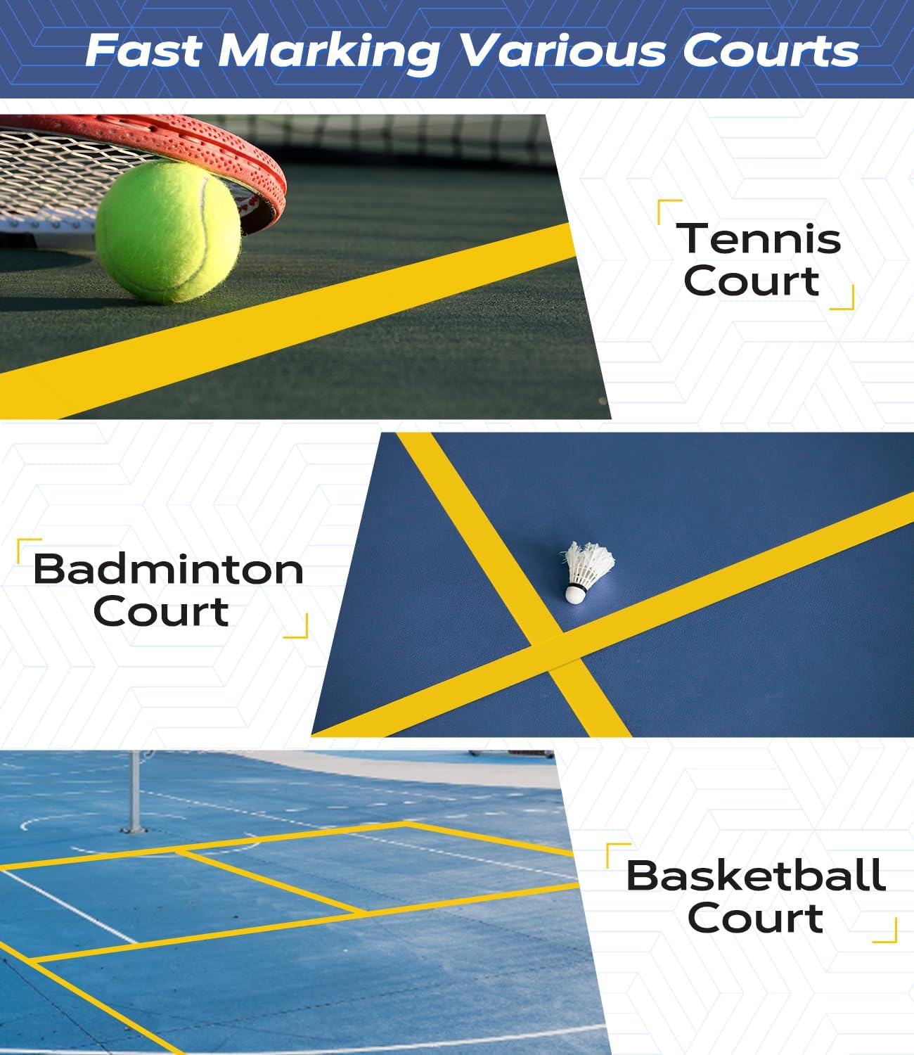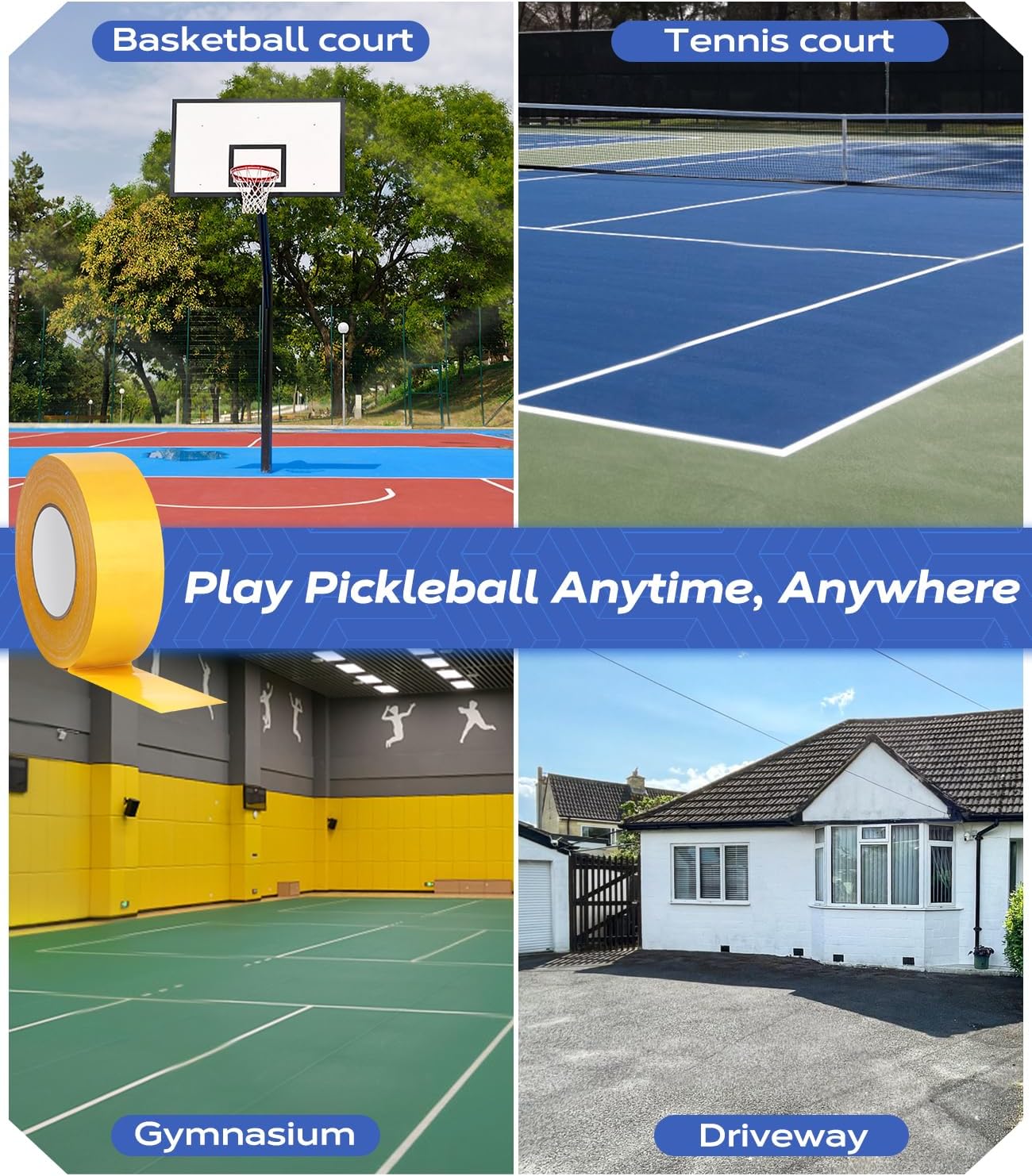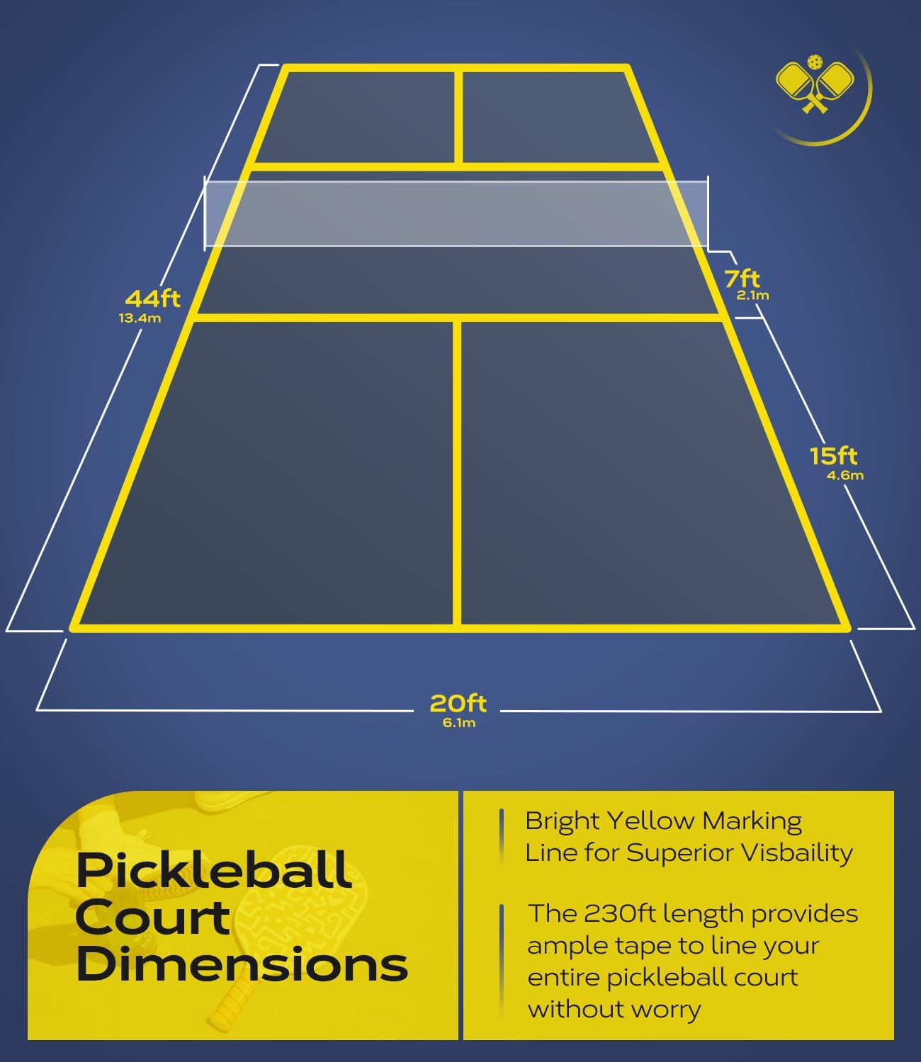 Mibhuvan Outdoor Pickleball Court Tape, 2in x 230FT Pickleball Tape Lines for Indoor Outdoor Sports Court Fast Marking, Su...
