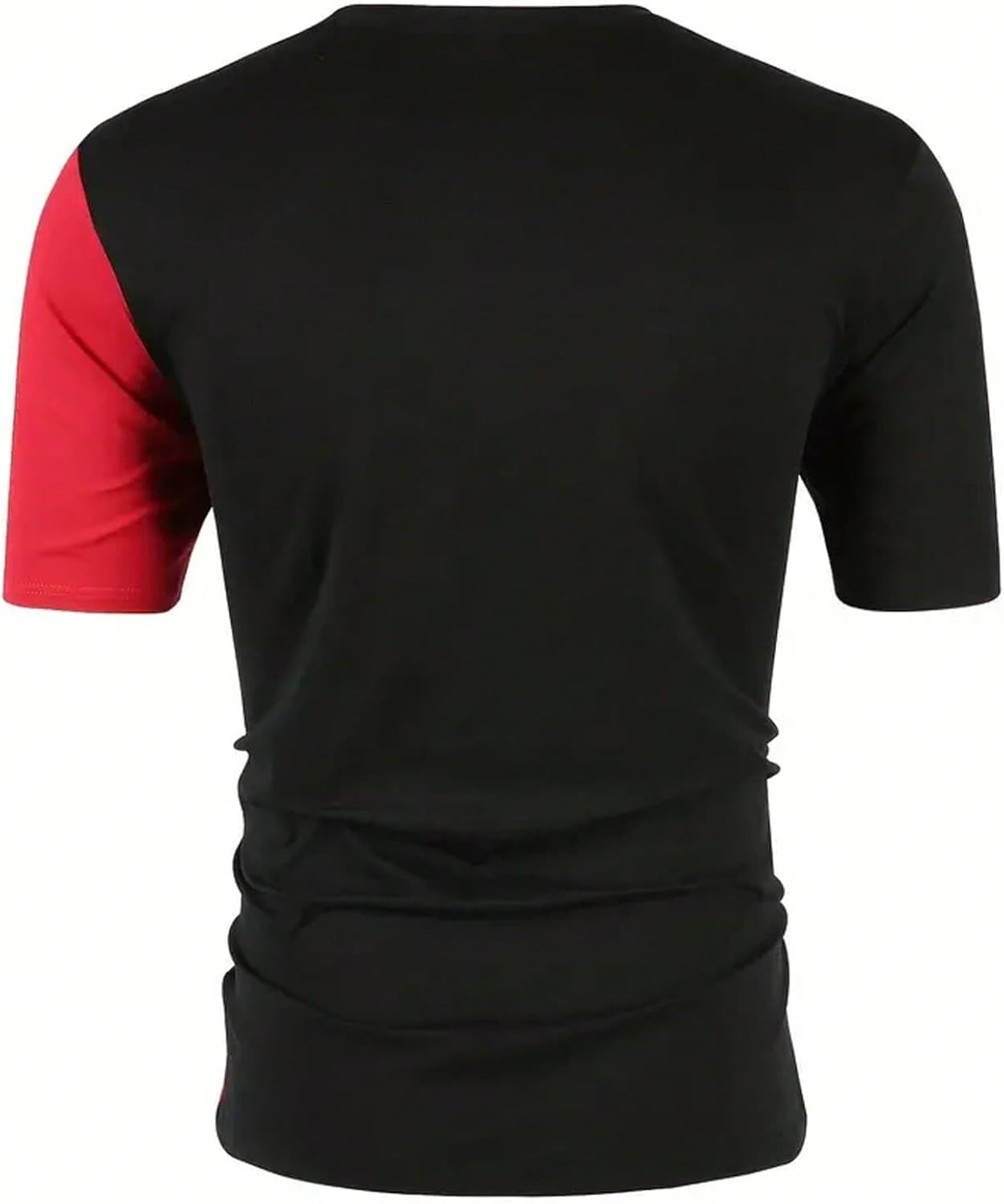 Features: letter, colorblock, round neck, short sleeve, regular fit, tee shirts for men, fashionable