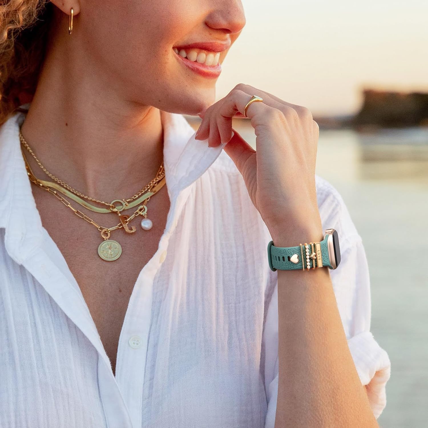 【Elegant Decorative Accessories】DaQin fancy rose engraved bands compatible with apple watch series 10 band come with 5 pcs sparkle metal decorative rings. The decorative ring is made of high grade metal plating engineering, giving your strap a personalized look while being durable and strong. These accessories measure 21mm in length and 3.5mm in height and fit most silicone bands, bringing more attractive matches to your silicone watch bands