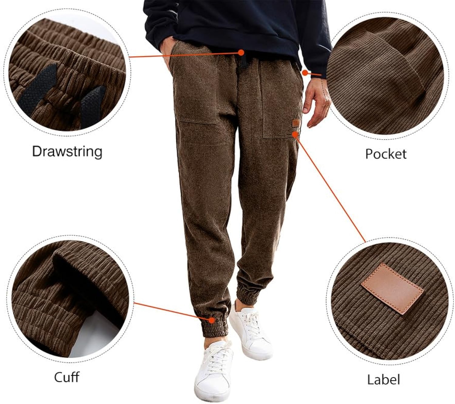 Comfortable Corduroy Material: JMIERR mens corduroy joggers pants crafted from high-quality and lightweight corduroy fabric, these men's corduroy pants offer exceptional comfort and style. Perfect for extended periods of wear.