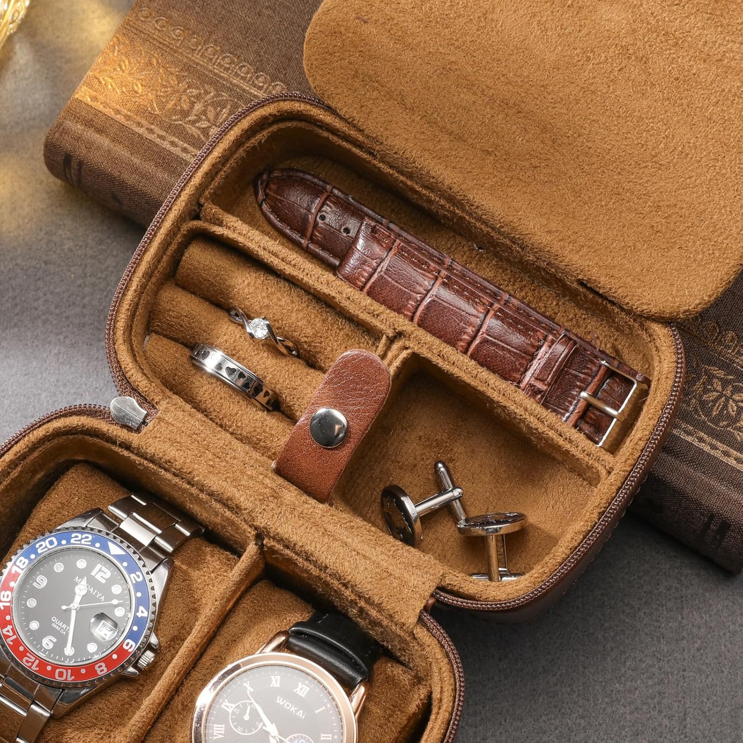 Perfect for Traveling: The 2-watch travel case easily fits into carry-on luggage and is suitable for carrying 2 watches; the top compartment securely holds jewelry in place, allowing you to switch up your look when attending special occasions