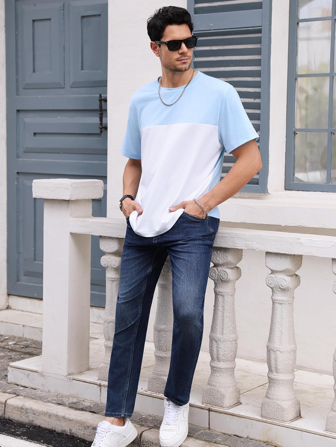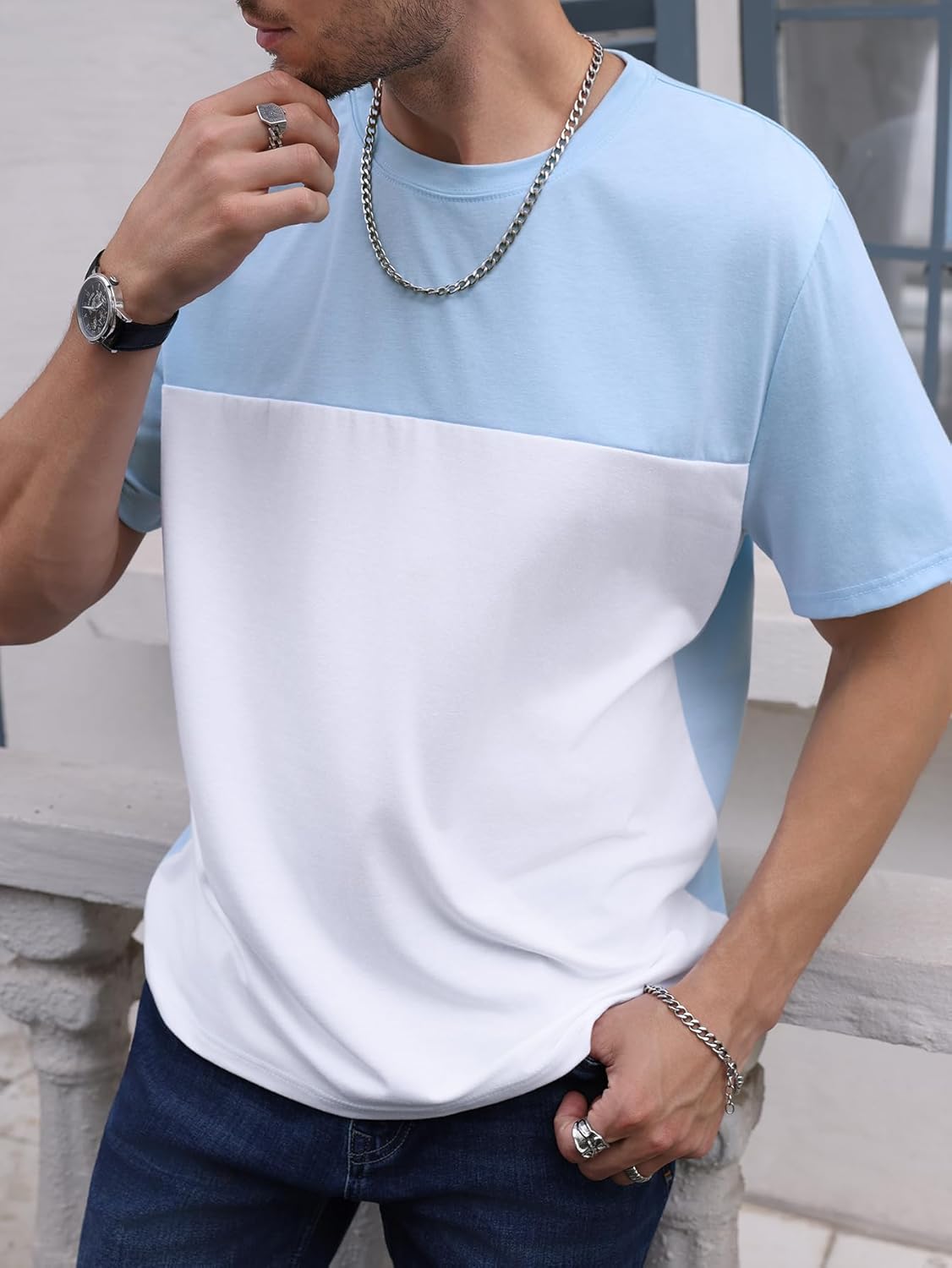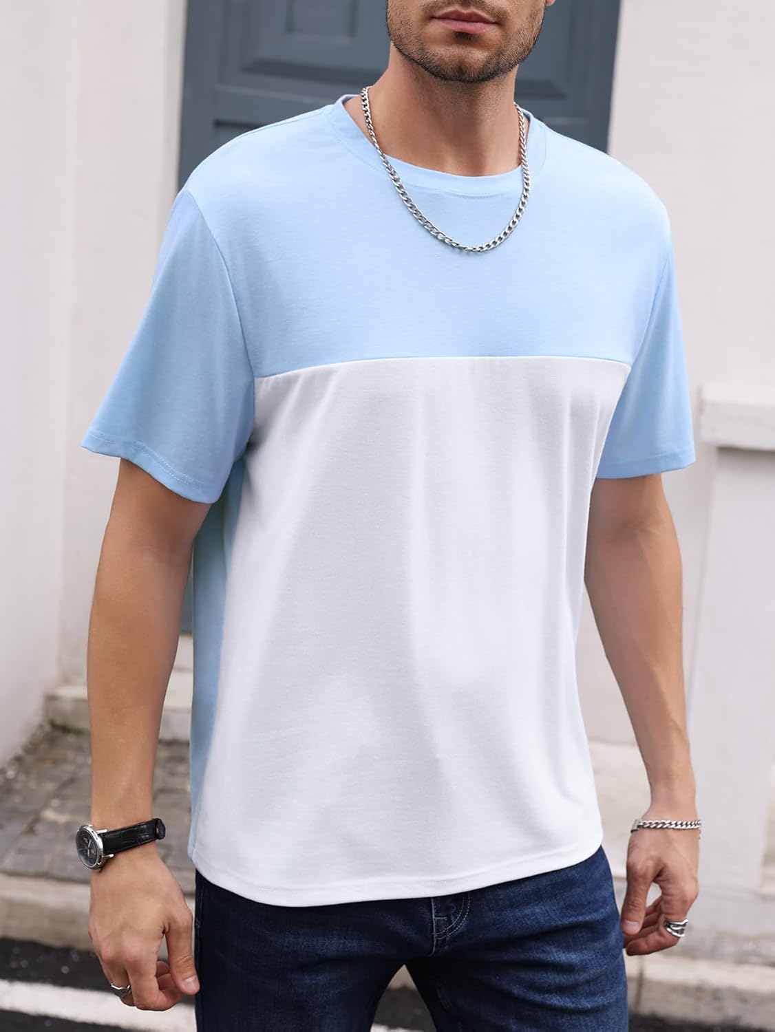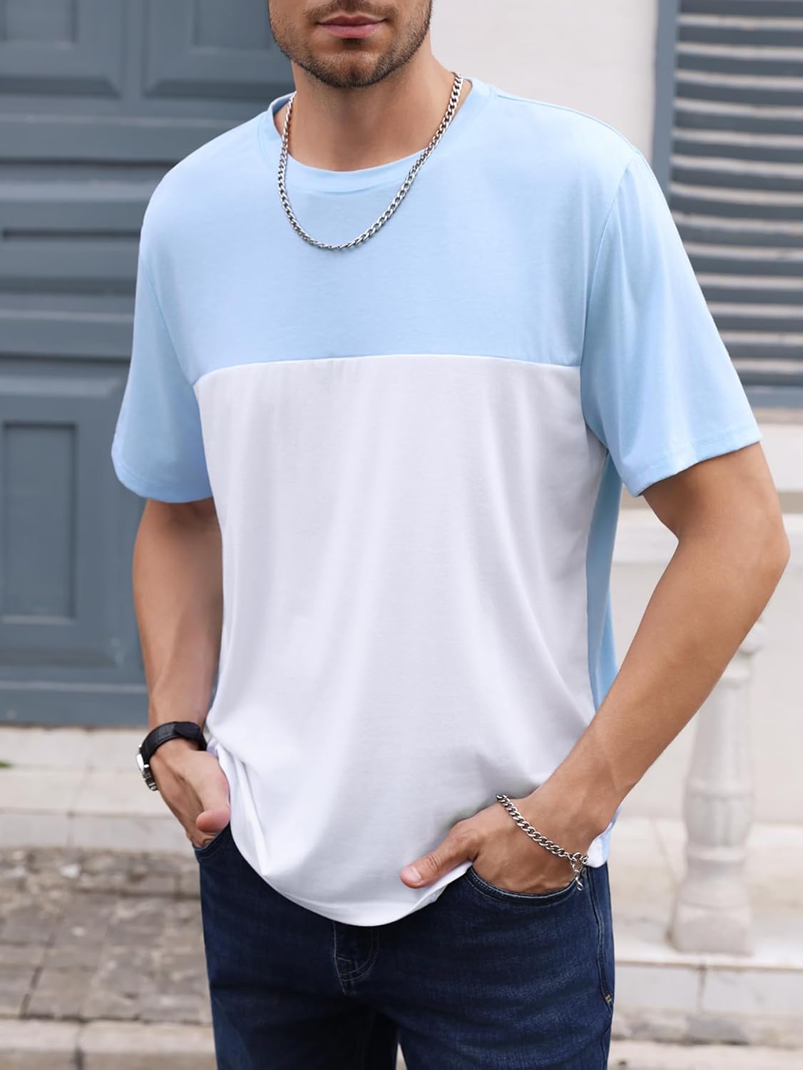 Crew Neck, Two Tone Colorblock, Regular Fit