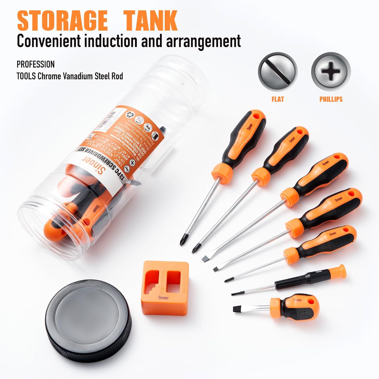 Easy to store and carry: All screwdrivers are housed in a sturdy and compact plastic barrel for easy storage and carrying.
