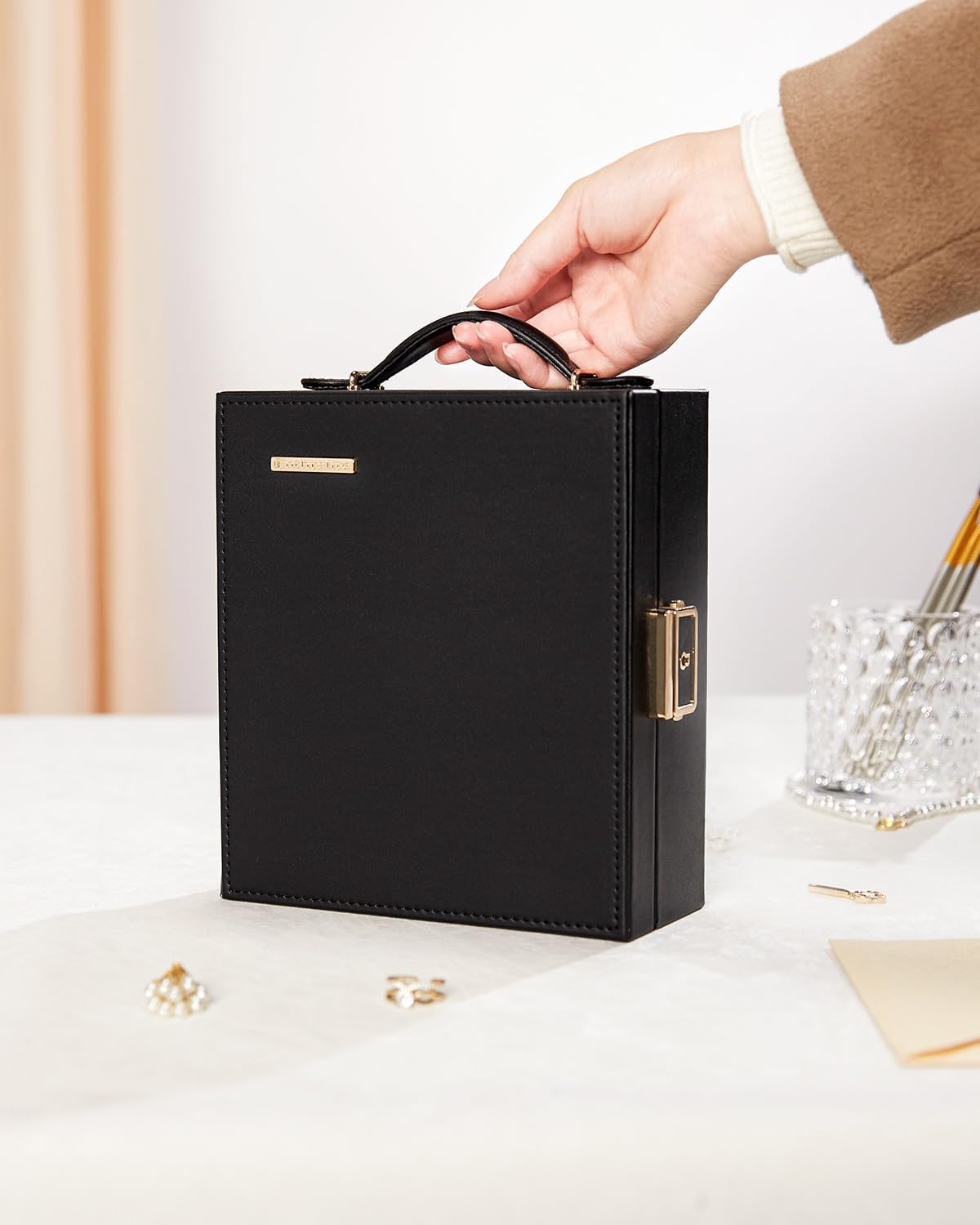 Thoughtful Details for an Elegant Travel Jewelry Holder: The metal lock protects your jewelry from children and pets. The sturdy handle allows for easy transportation during travels. We offer a variety of colors, including White, Black, Blue, Dark Green, Light Pink, providing you with more options