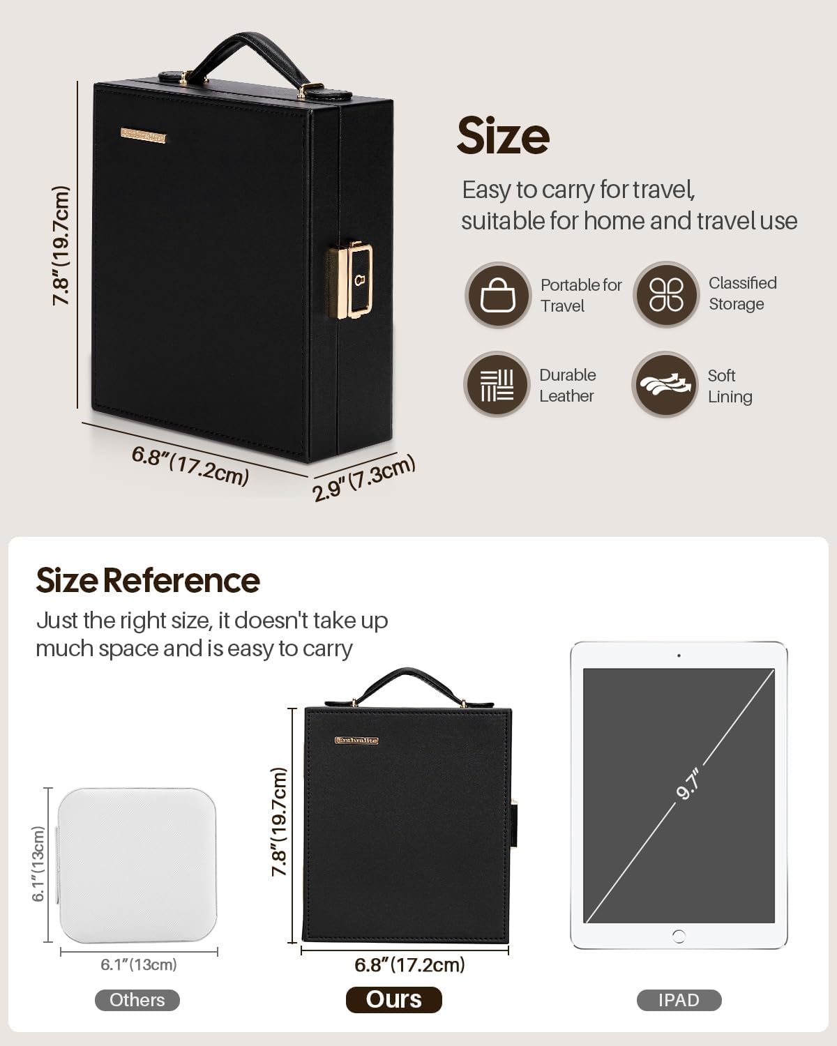 A Wonderful Gift for Travel Enthusiasts: Size: 7.76’’ x 6.77’’ x 2.87’’. Suitable for girls or women, this jewelry box makes a great gift for occasions such as Valentine’s Day, Mother’s Day, Christmas, anniversaries, weddings, graduation, birthday etc. It’s perfect for giving to your girlfriend, wife, mom, friends, colleague or teacher who loves to travel