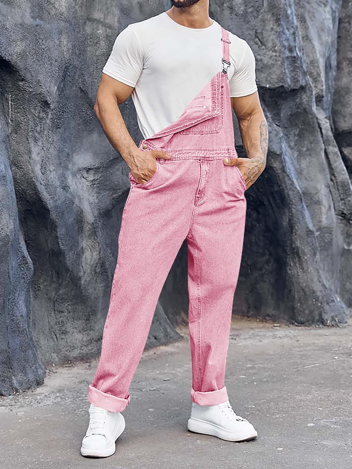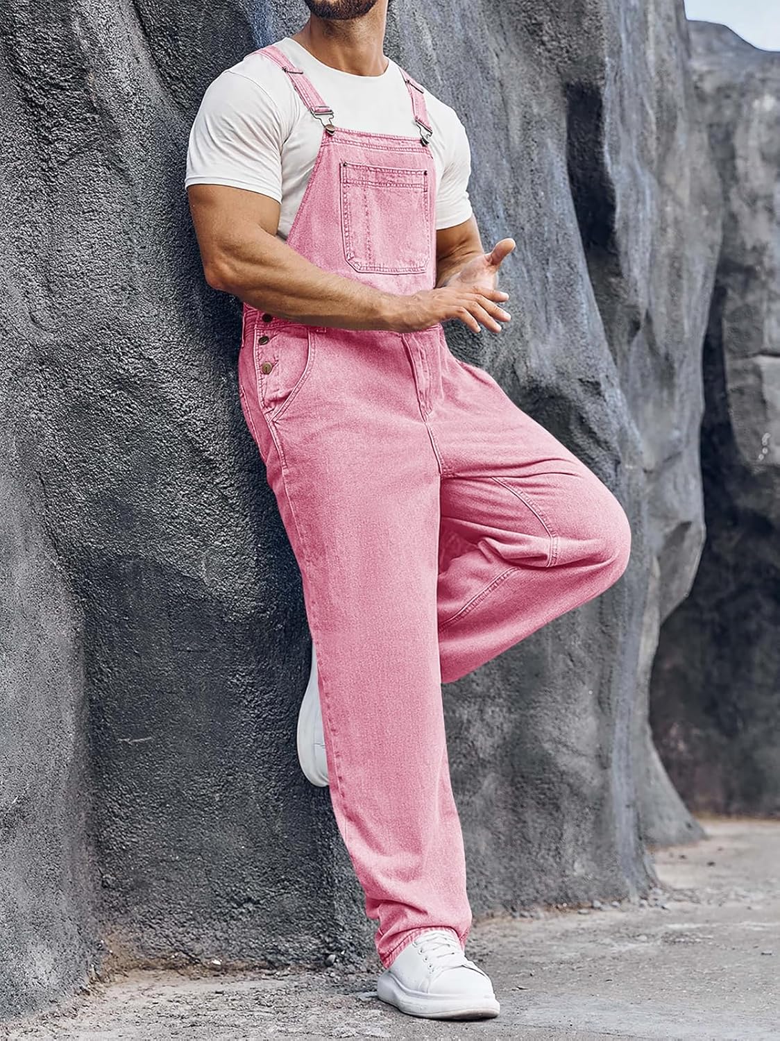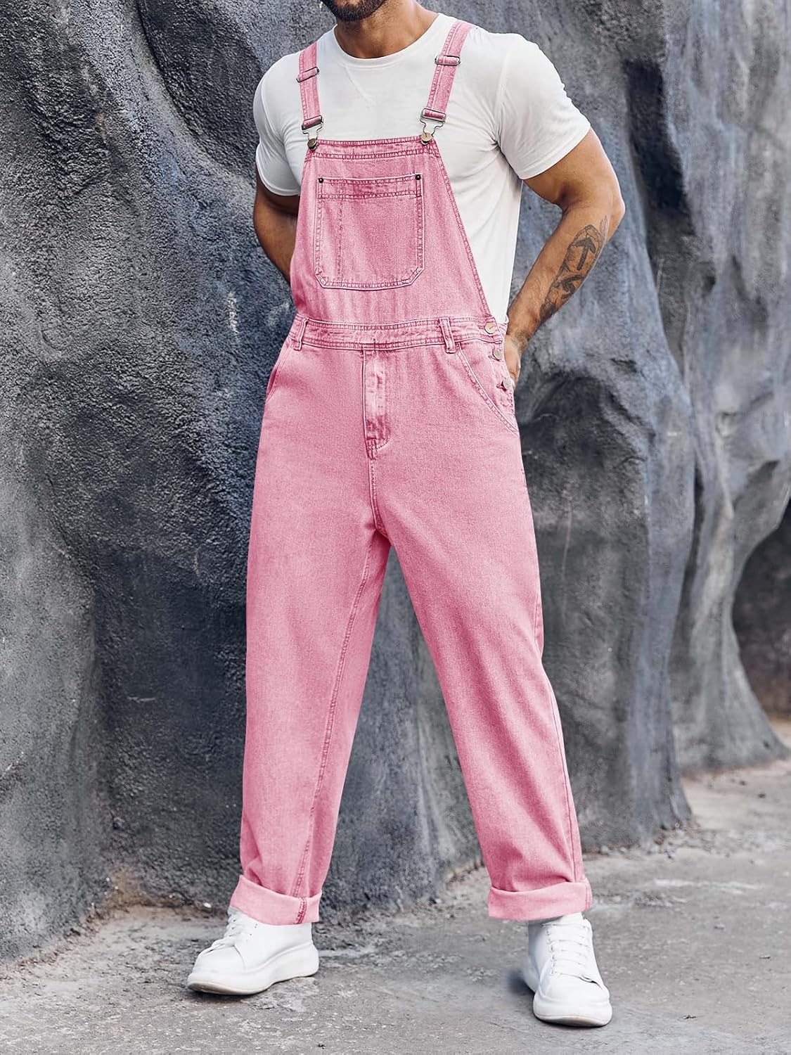 Features: Fashion overall trousers for men, Button Fly and zipper closure, Denim fabric, Trousers, Two side pockets and two back pockets. These workwear jean jumpsuit feature a generous and relaxed touch, regular fit with adjustable shoulder straps, big bib pocket & multiple other pockets for convenient storage.