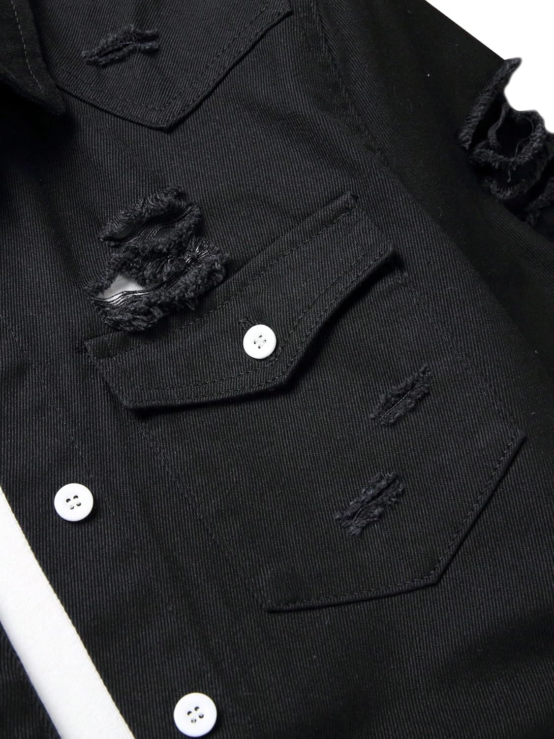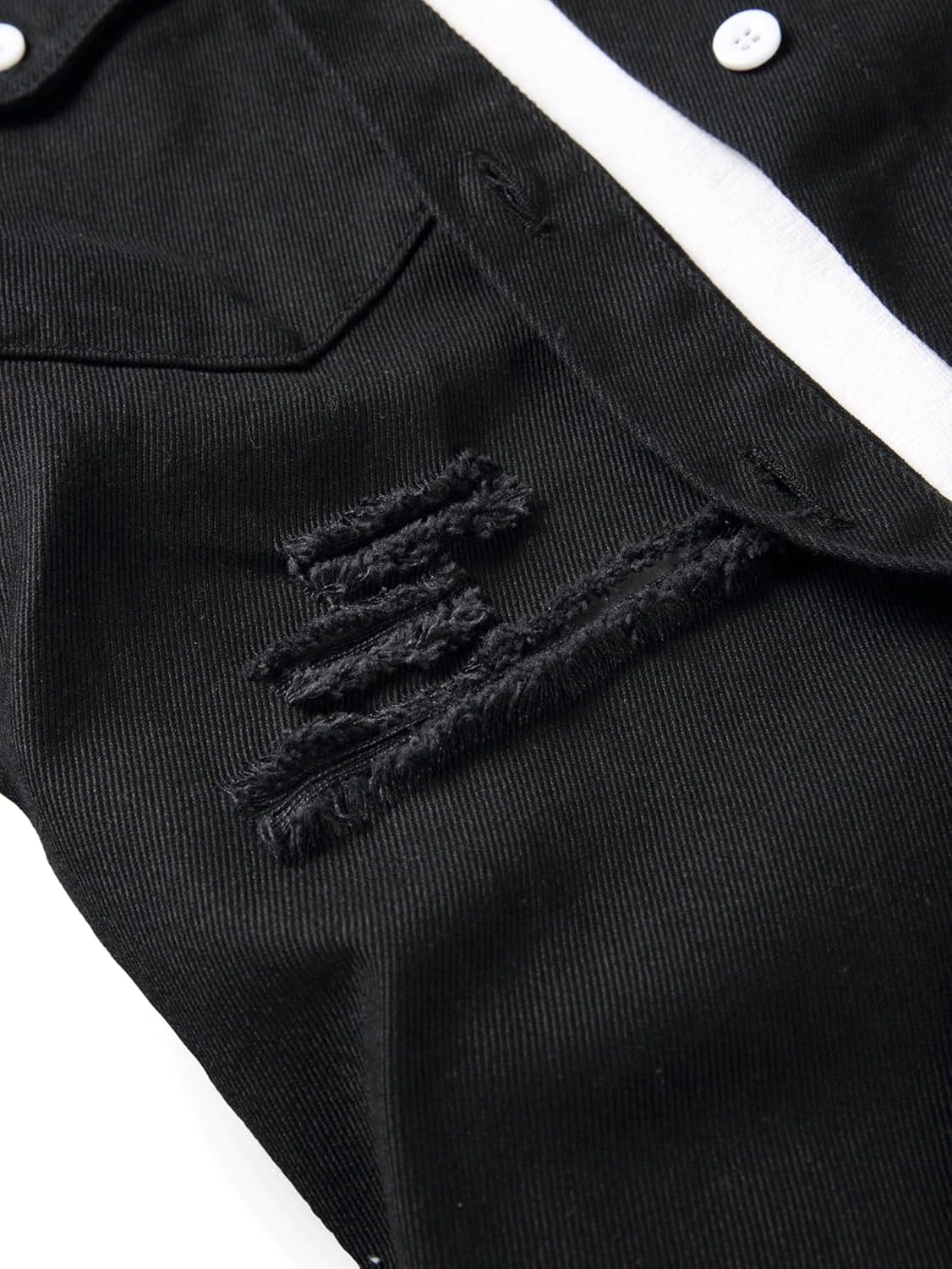 Floerns Men's Causal Ripped Button Front Dual Pocket Short Sleeve Denim Shirt Without Tee