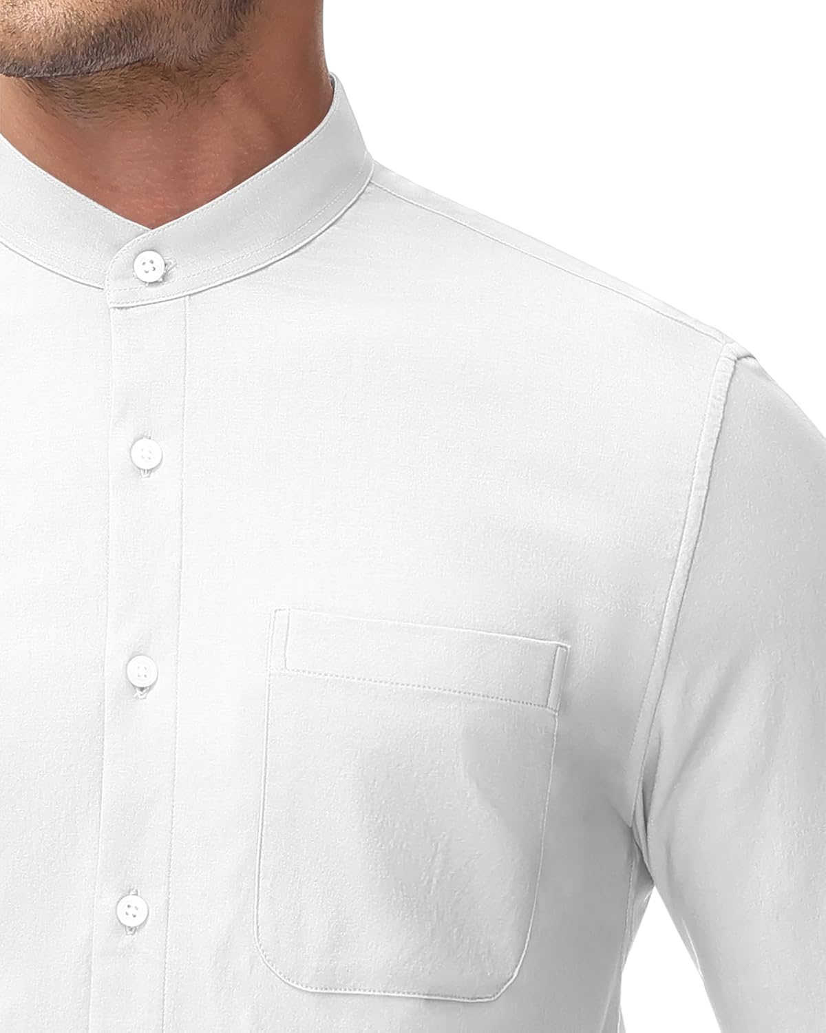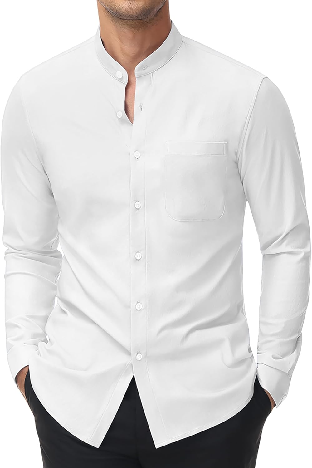 Band Collar: The mens shirts with stand collar, also named Chinese Collar or Mandarin Collar, and Chest Pocket. Traditional semi-formal shirts that be breaking free from the constraints of formal dress shirts, Specially designed for fine and elegant man