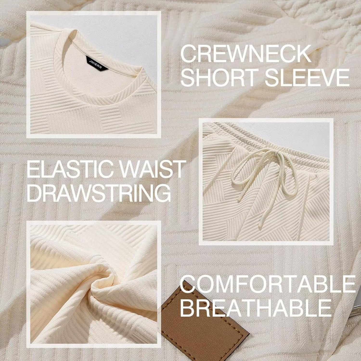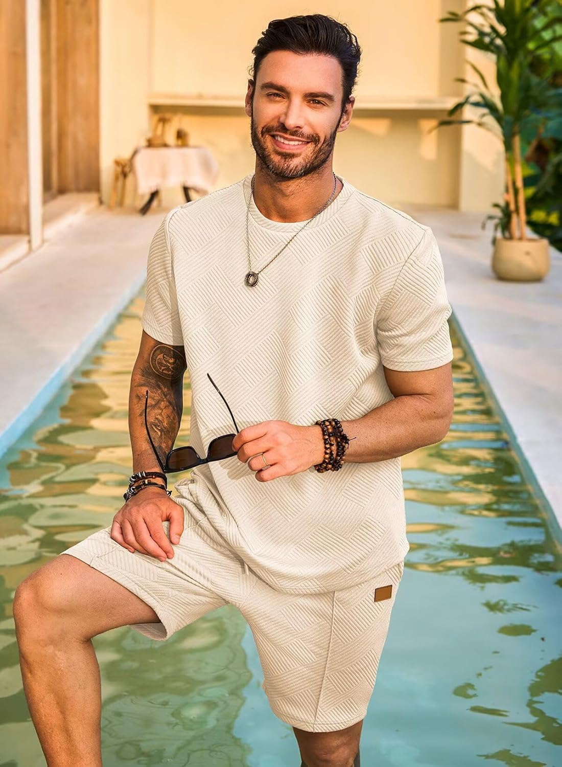 Classic Style: Men's 2 piece short sets outfits features a regular fit, classic crew neck and short sleeves design. The shorts feature an elastic waist drawstring for an effortlessly custom fit, and their chic geometric texture and classic solid colors make them timeless.