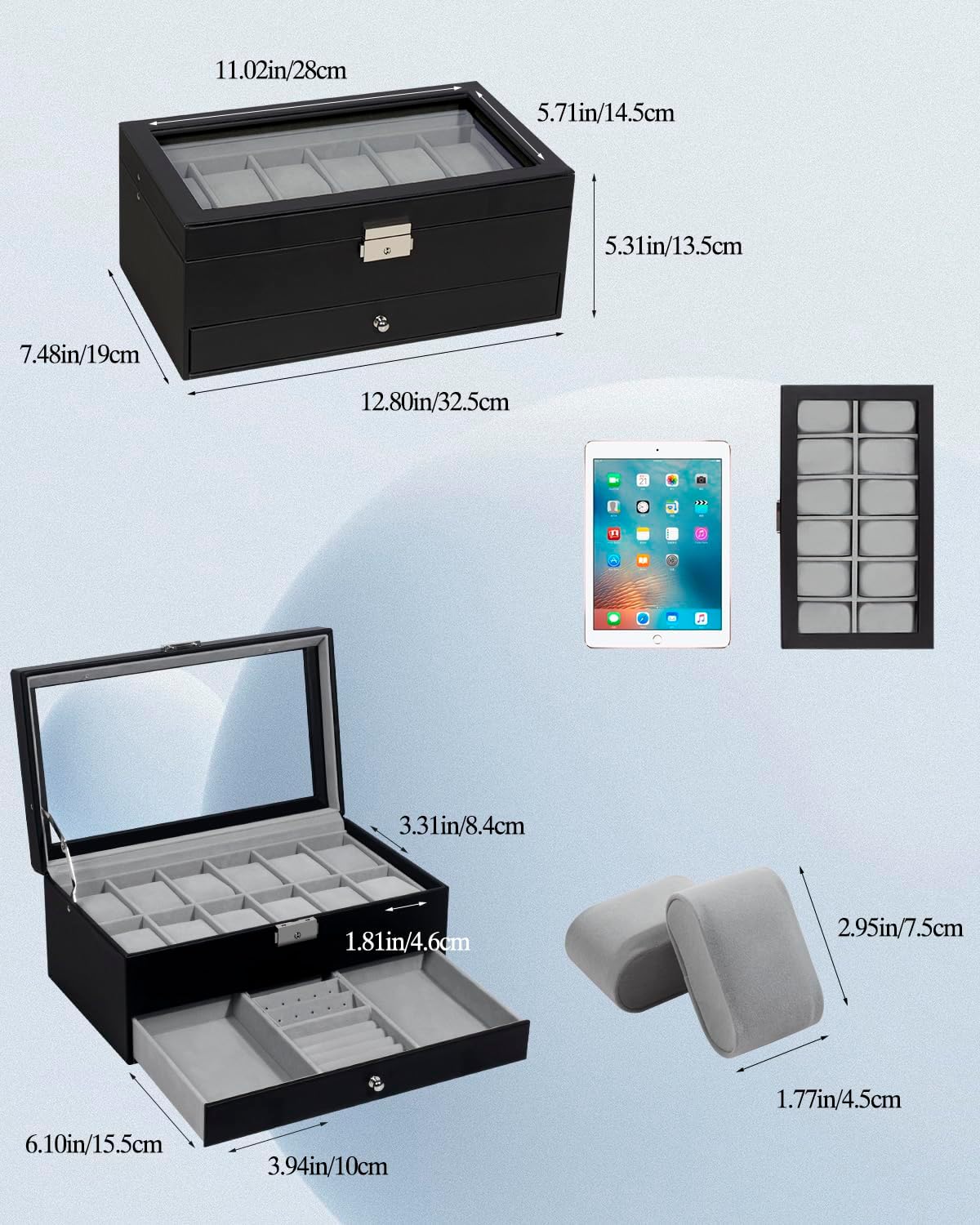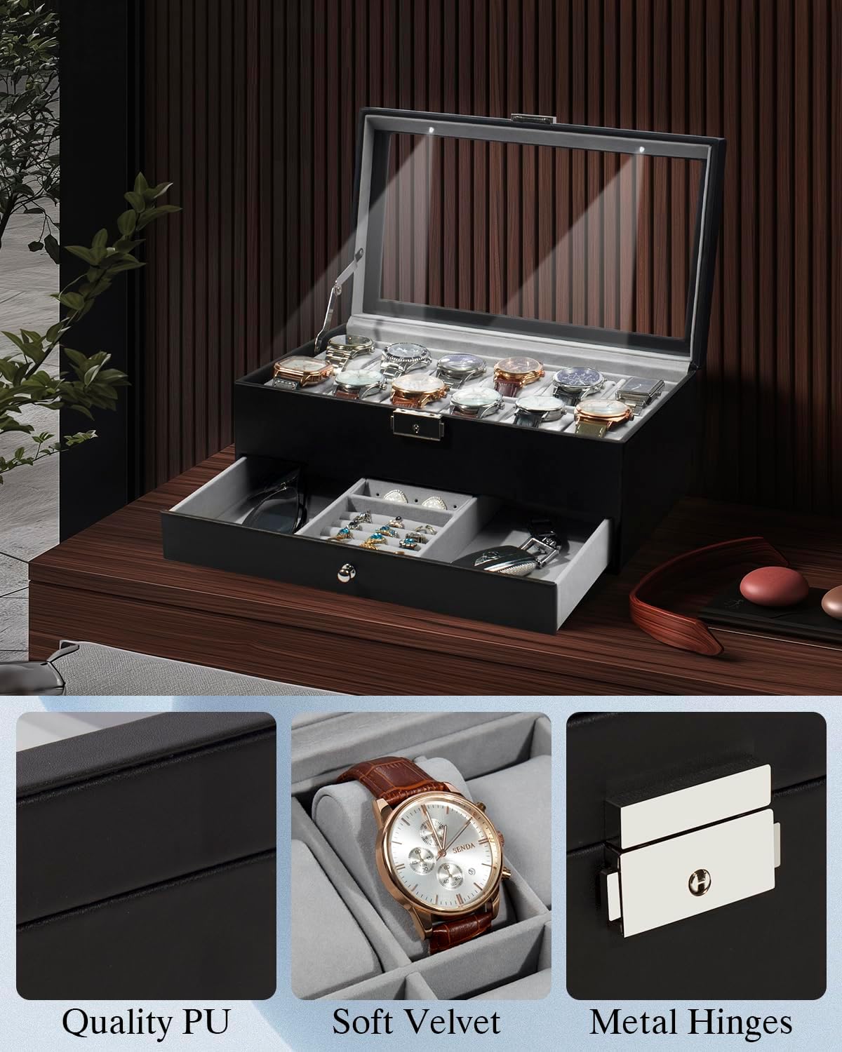 [???????????????????? ?????? ????????????????????????]: The interior is lined with high-quality, soft material that cushions your watches and jewelry, preventing scratches and other potential damage. Additionally, the watch box is designed to keep dust at bay, ensuring that your items remain in pristine condition. This level of protection is crucial for maintaining the longevity and appearance of your cherished collection.