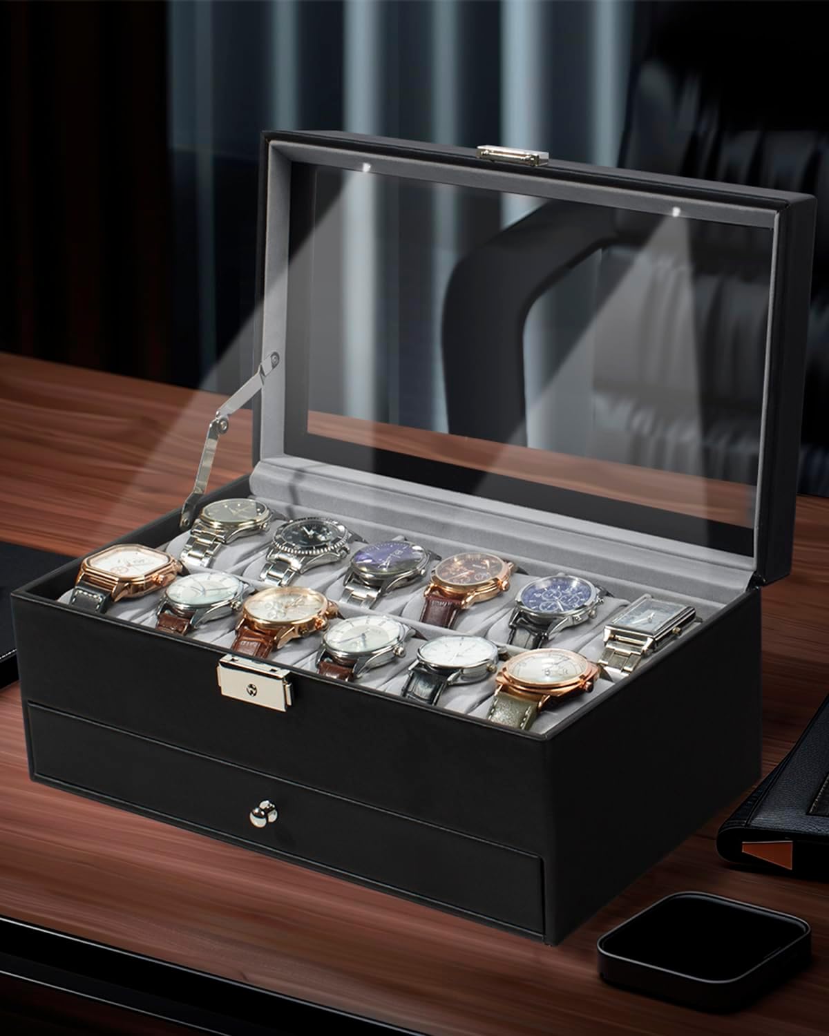 [?????????????? ???????? ?????????? ??????]: This watch box is the perfect gift for anyone who loves to collect and display their watches, whether they are a seasoned collector or just starting out. It can be given to friends, fathers, husbands, sons and lovers. With its attention to detail and sleek design, this watch box is sure to impress anyone you like.