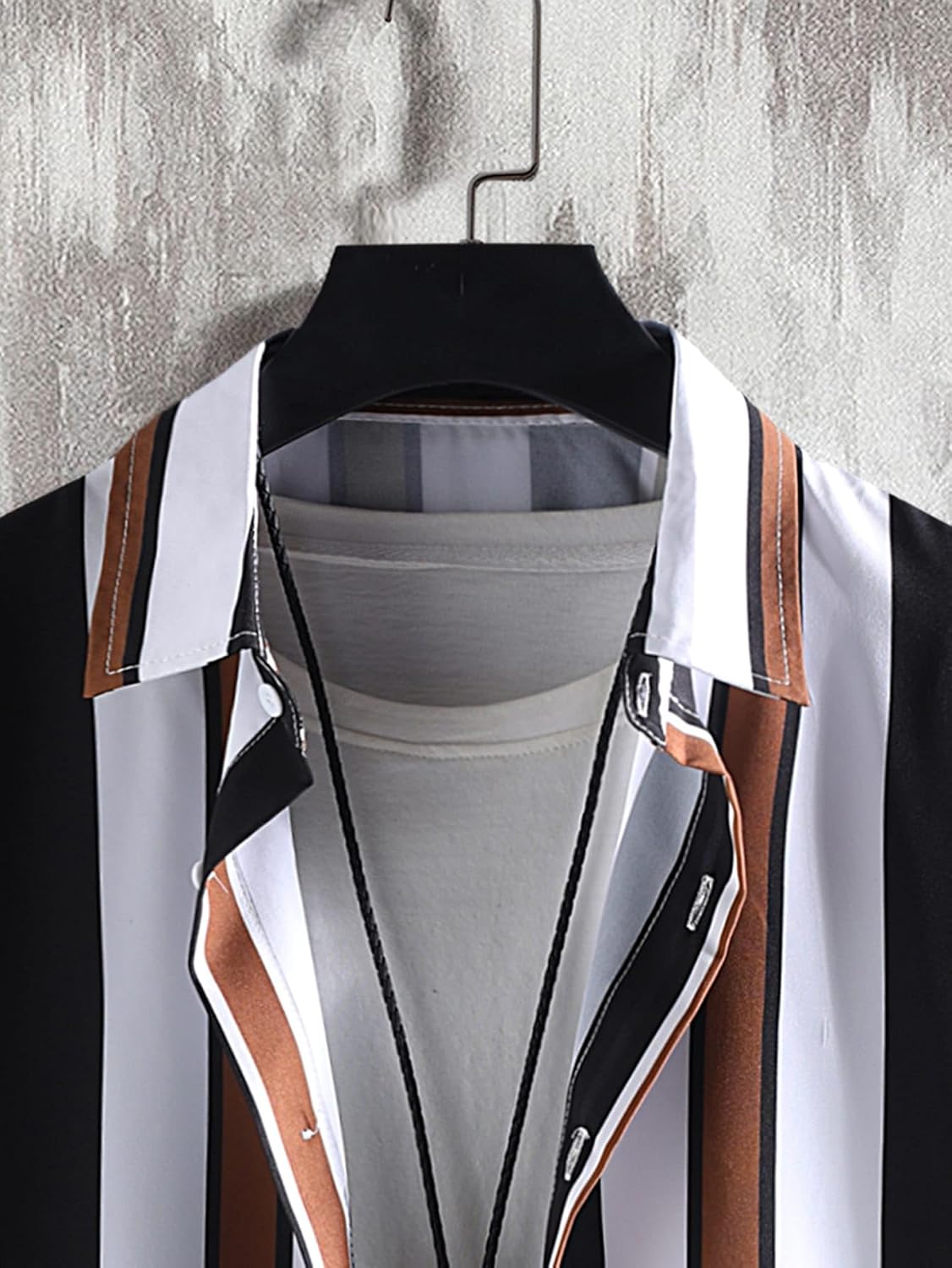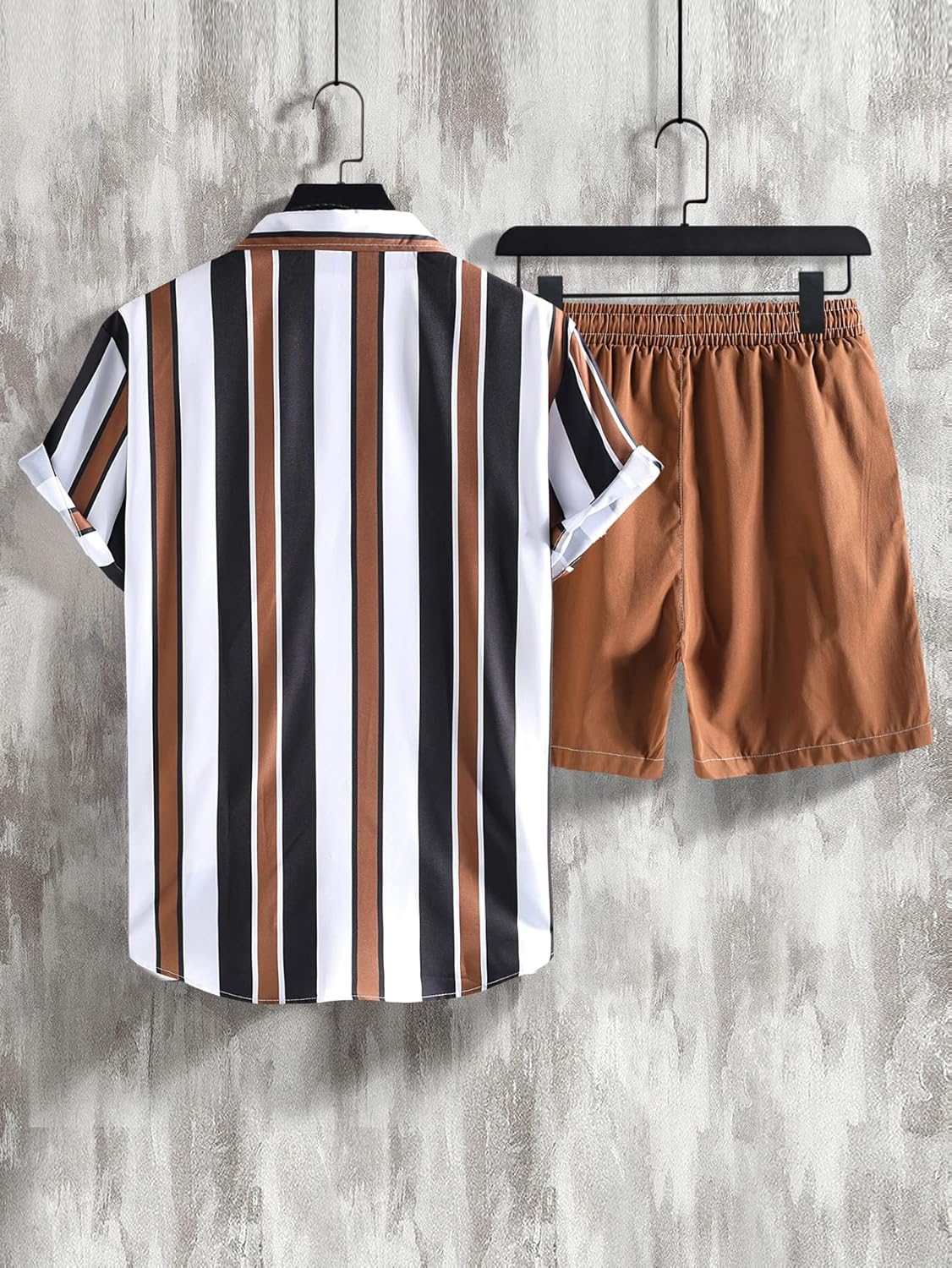 Features: Collar, Short Sleeve, Striped, Button Down Shirt, Drawstring Waist, Casual Shorts