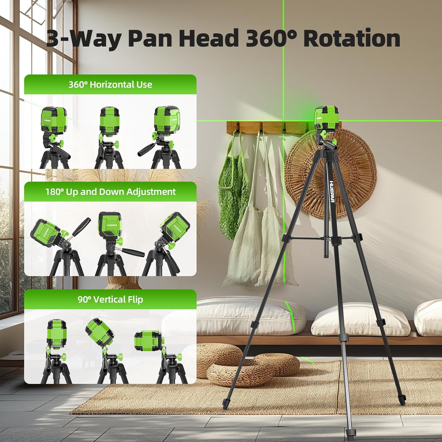 Laser Level with Tripod, HUEPAR 98Ft Self Leveling Laser Level Green Line Laser Cross Line Laser Leveler Tool for Picture ...