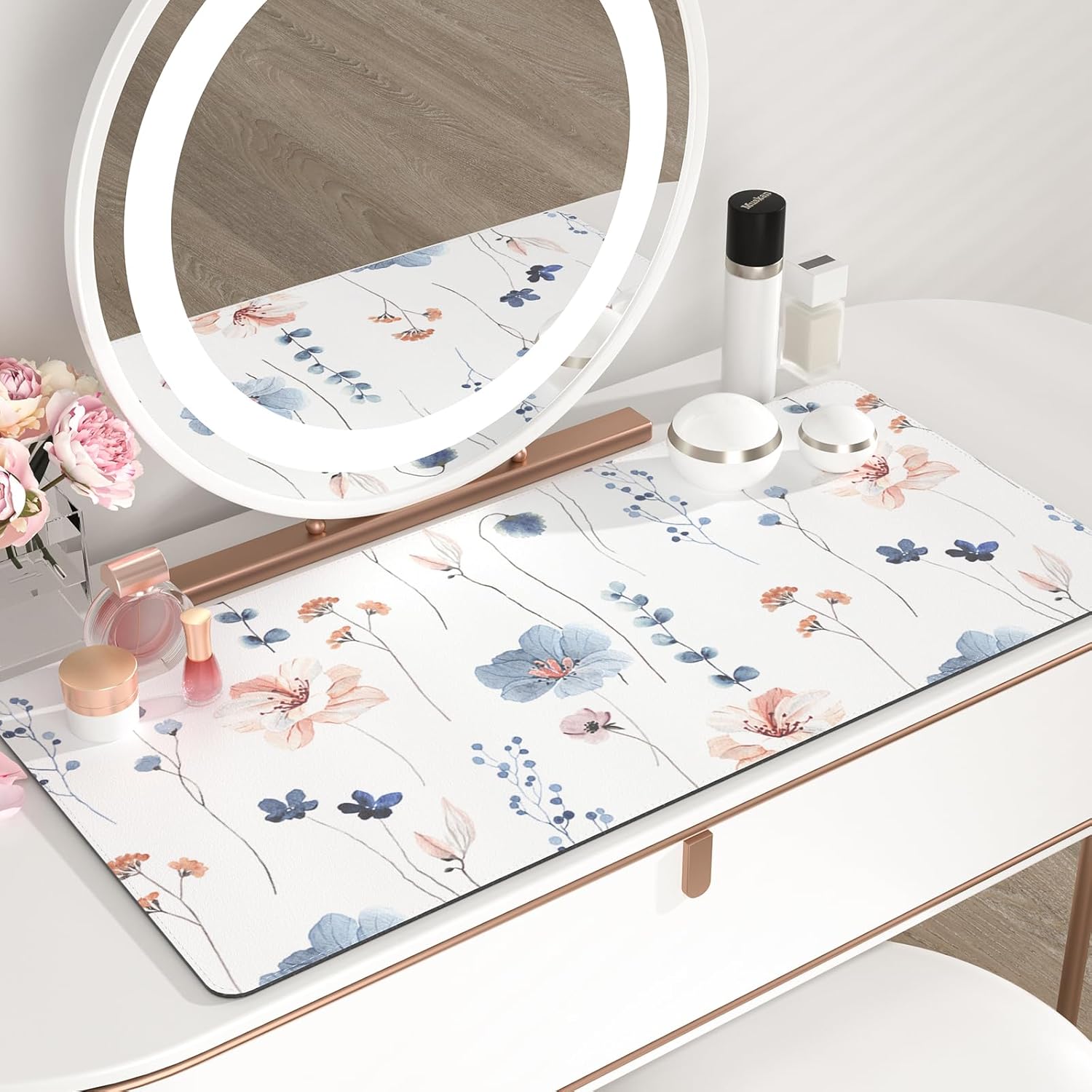 QIYI Large Mouse Pad for Desk, Floral Computer Desk Mat for Keyboard and Mouse, Non-Slip Rubber Base Waterproof Leather De...