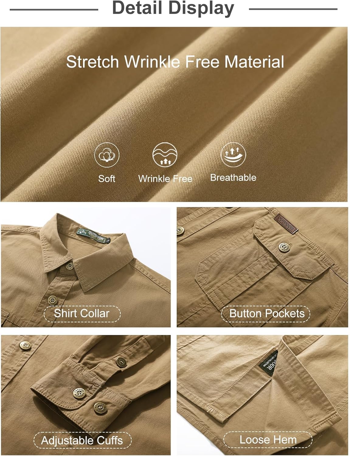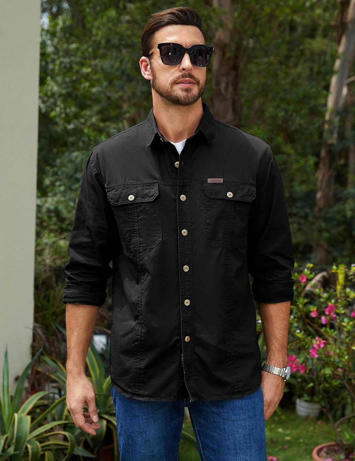 ?????????????? ??????????: The design of 2 button cuffs elevates your look, emphasizing your exceptional taste and masculine sophistication in men's casual button-down shirts, whether for outdoor activities like fishing, hiking, camping, or mountain climbing, or for leisure and lounging at home.