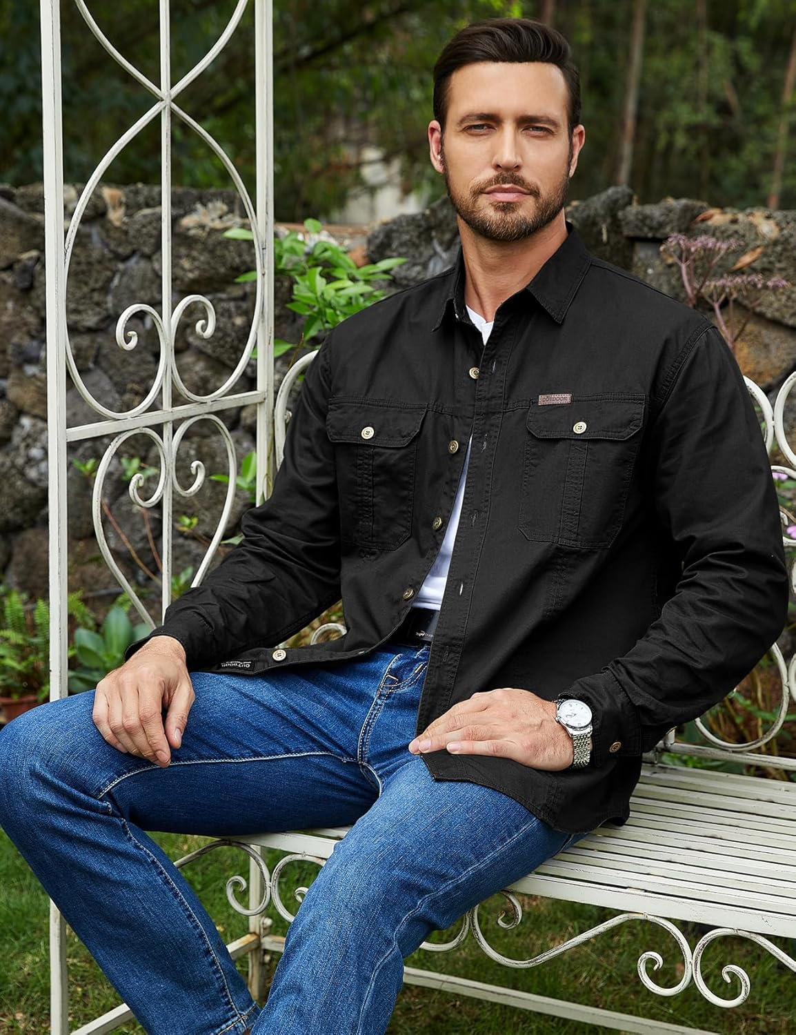 ?????????????????????? ??????????????: Highlight your charm with 7 stylish front buttons and dual chest pockets, accentuating masculine appeal in men's cargo shirts.