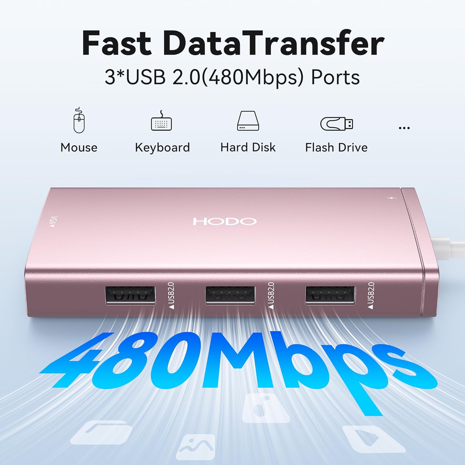 USB C Hub Multiport Adapter: This USB C Dock with 3 usb 2.0 ports, allows your conveniently connect keyboard,mouse, usb flash driver, usb c hard disks, transfer speeds up to 480Mbps, USB 2.0 allows you to connect keyboard or mouse without any lag