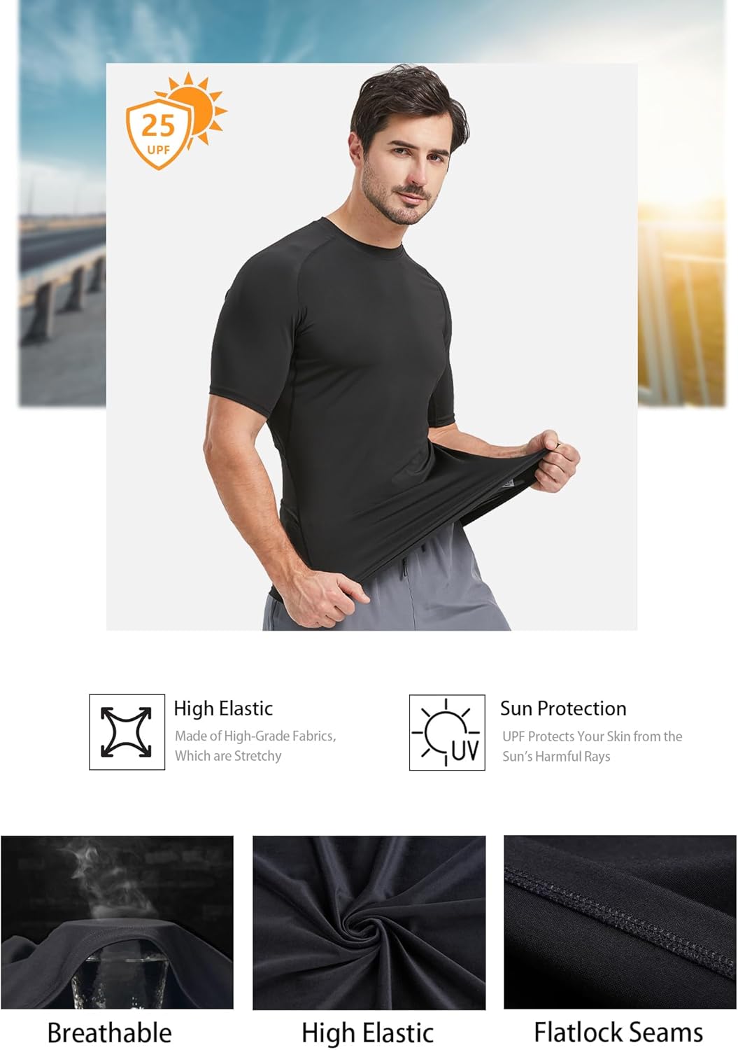 [Versatile Design] Whether you prefer to wear it as a standalone top or as a base layer, this rash guard shirt is perfect for both options. Its versatility makes it suitable for various occasions, be it on the basketball court, football field, running track, cycling route, swimming pool, or in the gym.