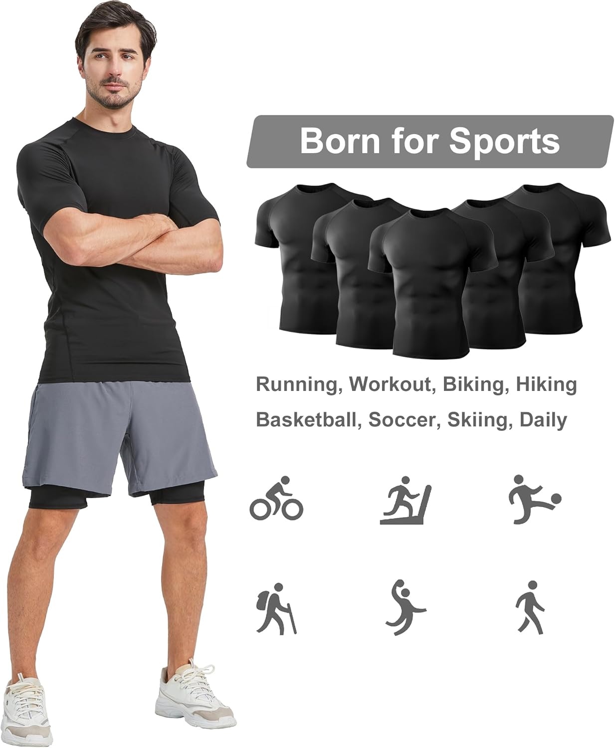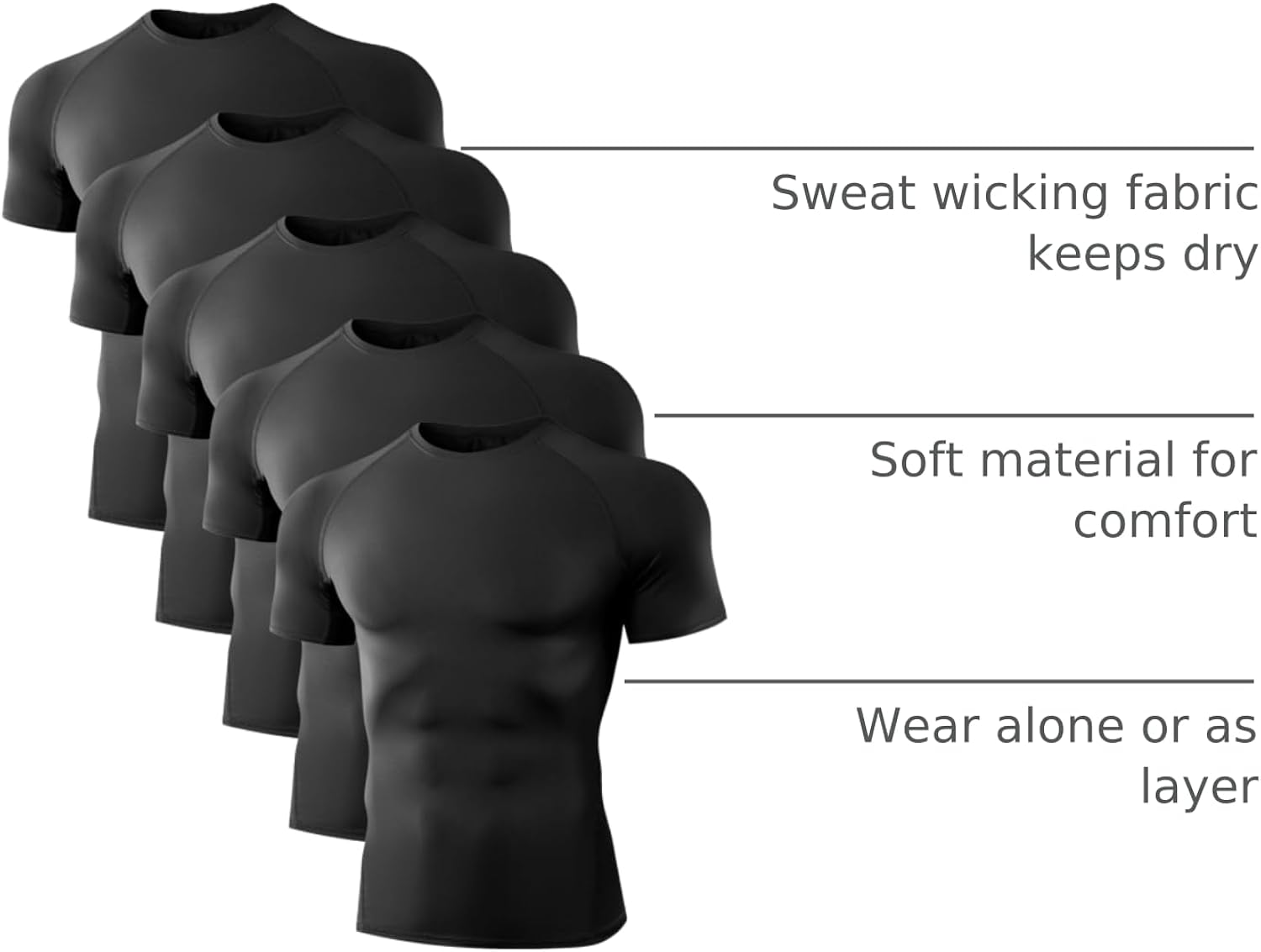 Dalavch 5 Pack Men’s Compression Shirts Short Sleeve Cool Dry Sports Athletic Workout Base Layer Undershirt T-Shirt Tops