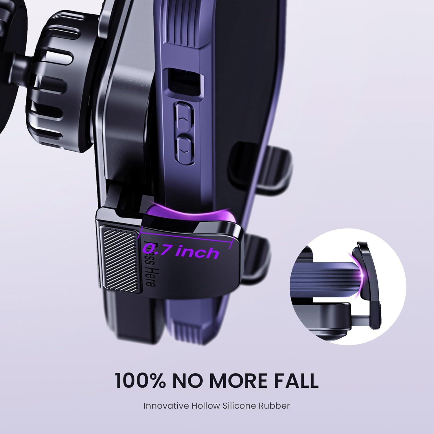 Secure Grip: car phone mount is armed with an innovative hollow silicone rubber. It can hold your phone more tightly than other silicone arm clips, you can rollover your phone at will, it will not move at all cell phone holder for car phone mount air vent