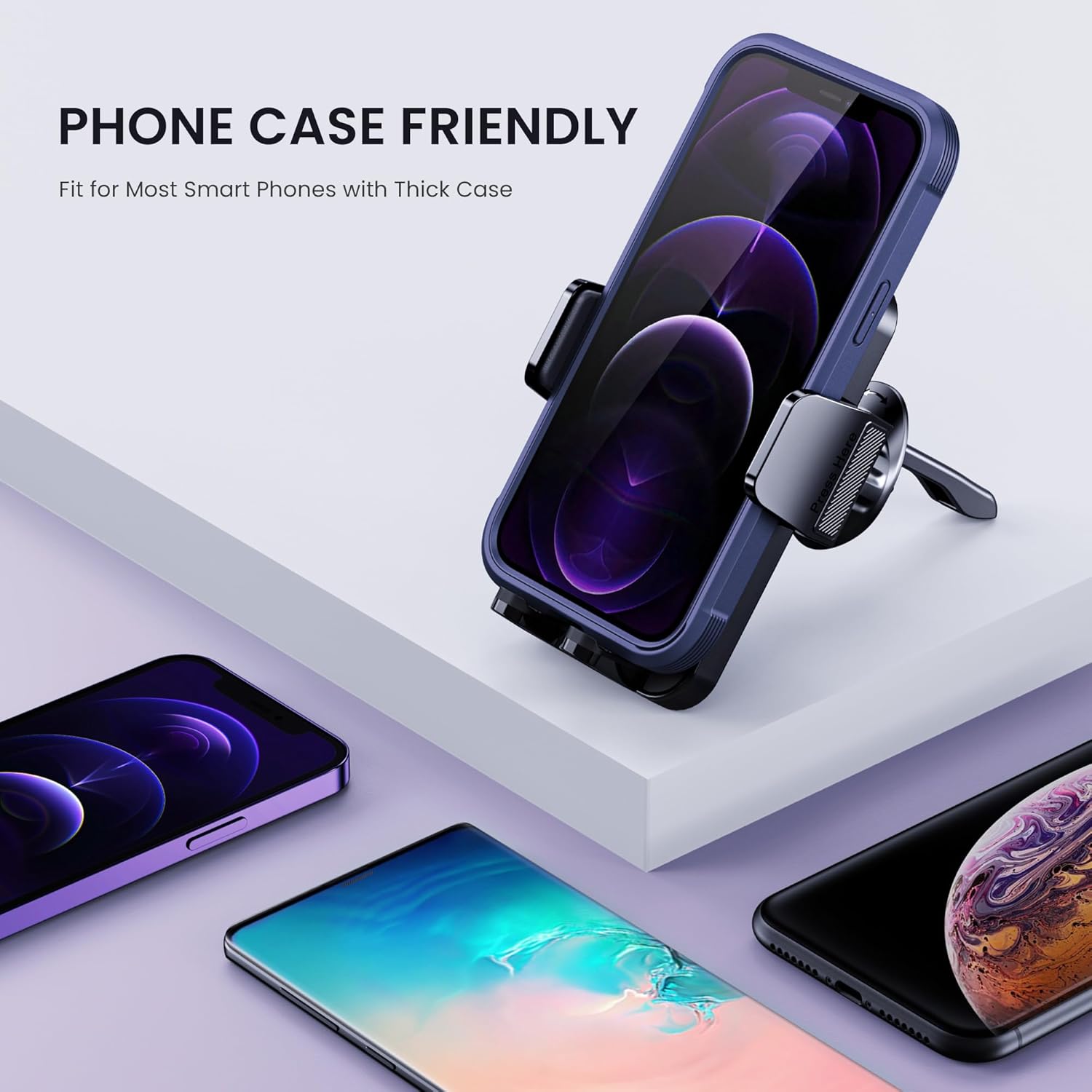 Universal Compatibility: Phone holders for your car adopts a one-button release system. The adjustable clip arm is perfect for 4.0-7.1 inch phones. Quickly release your phone with one hand. Completely free your hands and enjoy your safe driving.