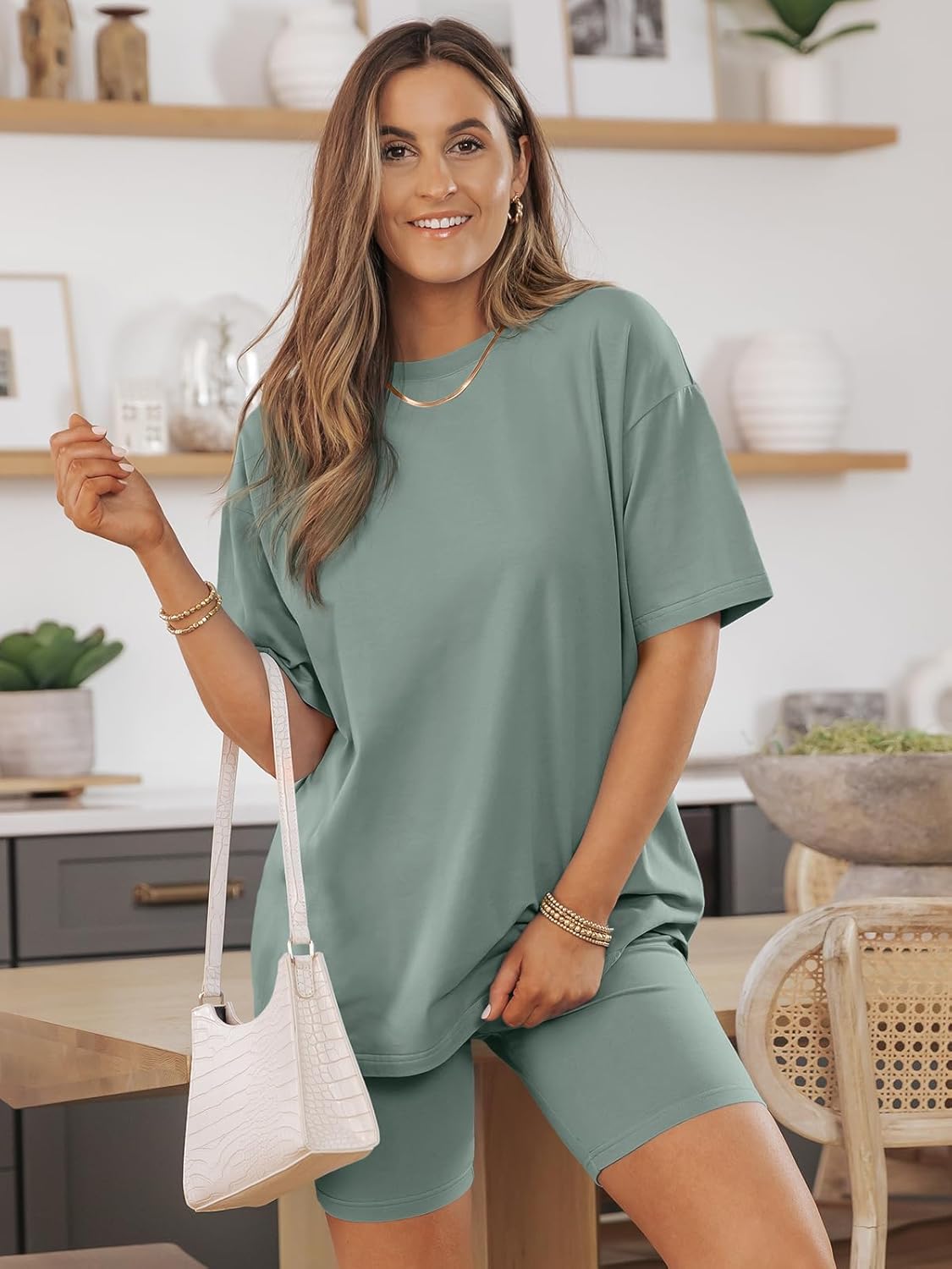 ★Ideas:This oversized tshirts tops biker shorts set is women's spring fashion 2025 trendy clothes in your wardrobes.Good shape and comfortable, breathable material can better complement your figure, let you shine in any occasion