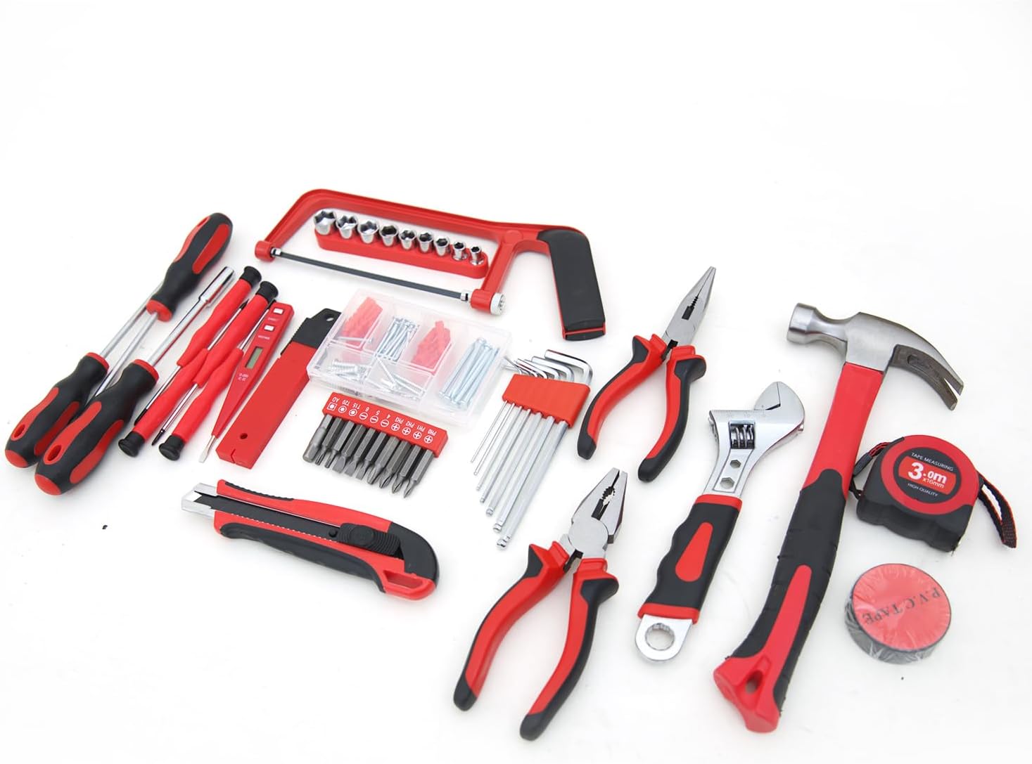 Comprehensive tool set: Our 108-piece household tools kit includes everything you need for small repairs and DIY projects, from hammers and screwdrivers to pliers and tape measures.
