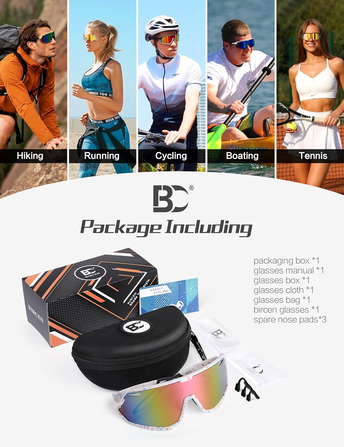 BIRCEN Baseball Cycling Sunglasses for Men - Women Running Shades Sports Glasses for MTB Mountain Bike Softball