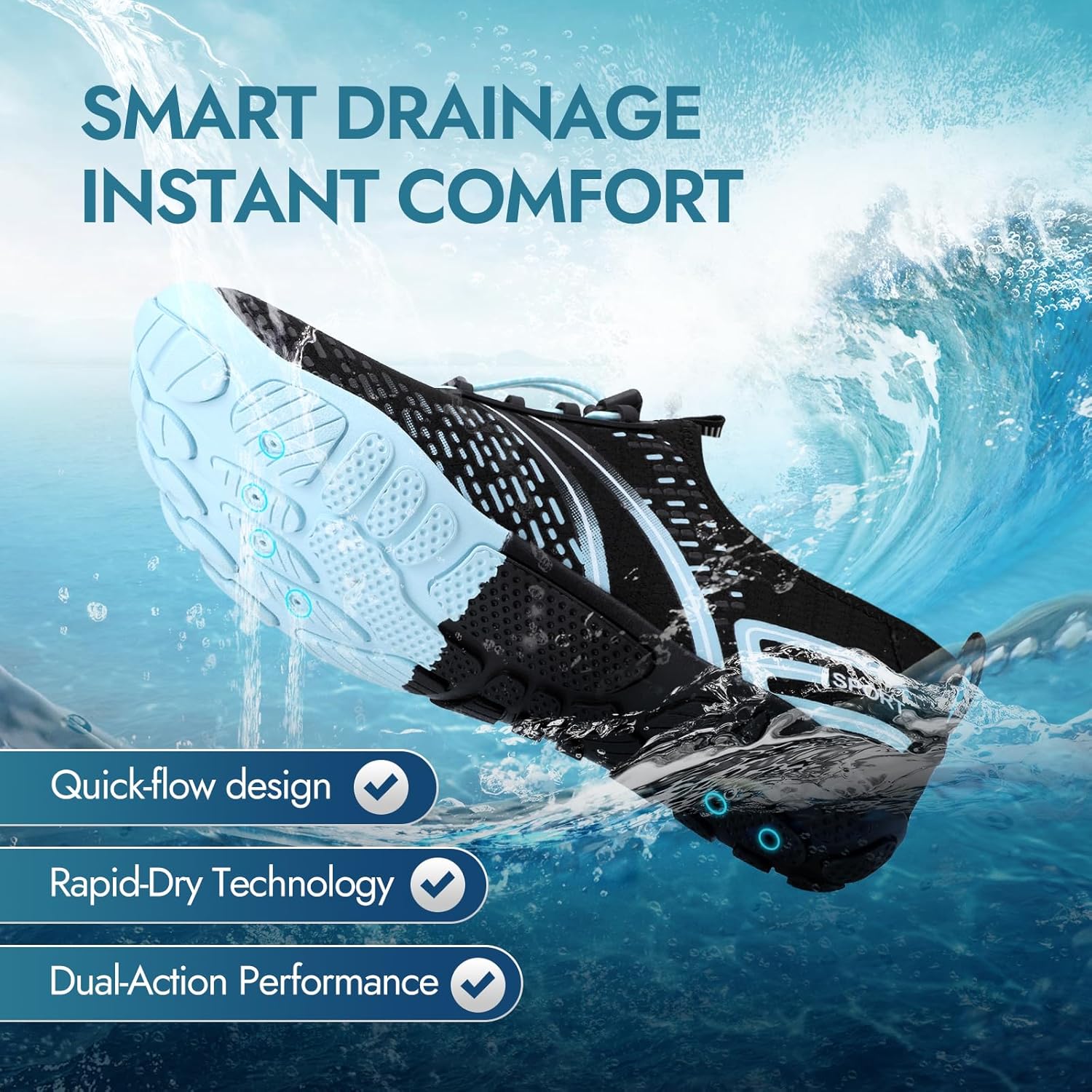 Flexible Twist and Quick Dry: Our swimming aqua shoes are light weight and easily carry, no matter you go to river, sea, lake and ocean to play, you can take our aqua shoes with you. The unique 8 drainage hole design can quickly discharge water and prevent sand from entering