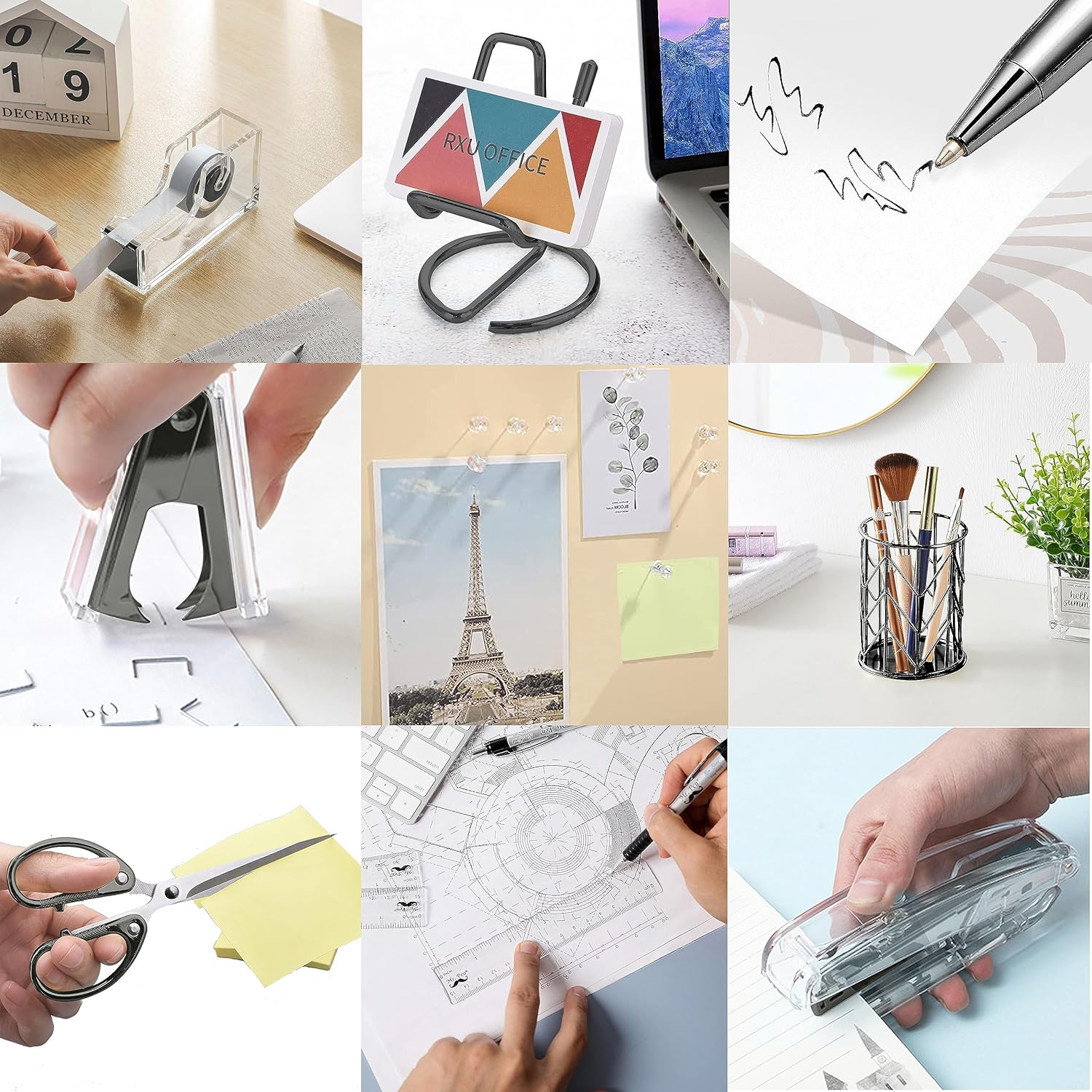 Wide Range of Use: This office supplies set includes several of the most commonly used work and study tools, suitable for many occasions, such as schools, offices, meeting rooms, etc. Lightweight and easy to carry.
