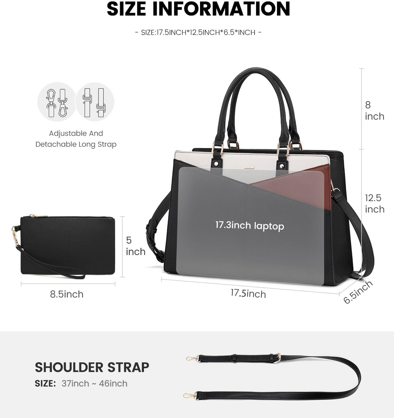 【Prfect Size for Laptop Bag】Dimension of the tote bag is 17" L * 6.5" W * 11.5" H; Weight: 2.58 lbs. The distance from the top handle to the tote bag is 8''. The adjustable shoulder strap is 37 to 46 inches long. It is large enough to keep your daily items organized. Its minimalist and chic appearance makes it suitable for both formal and casual occasions.