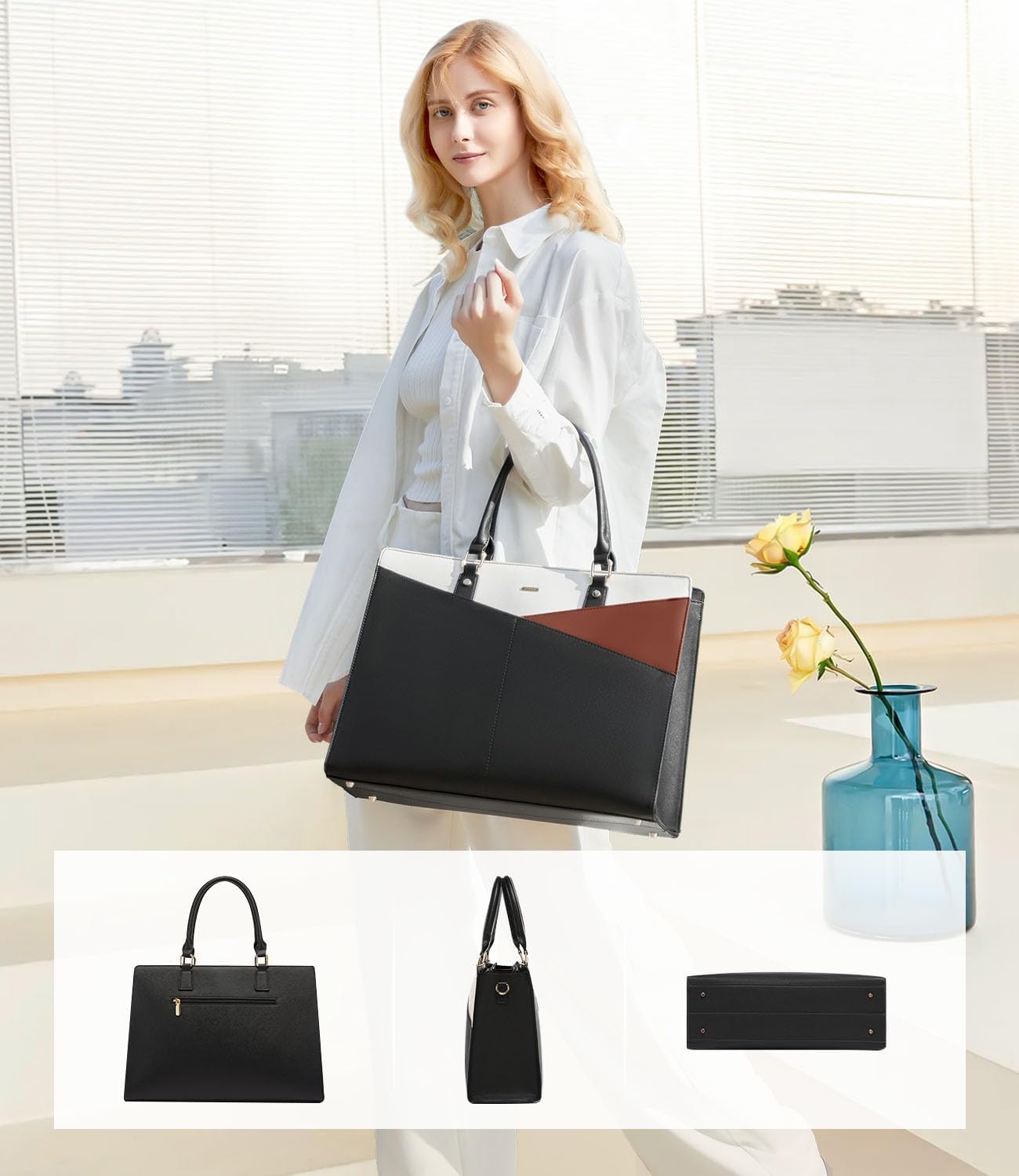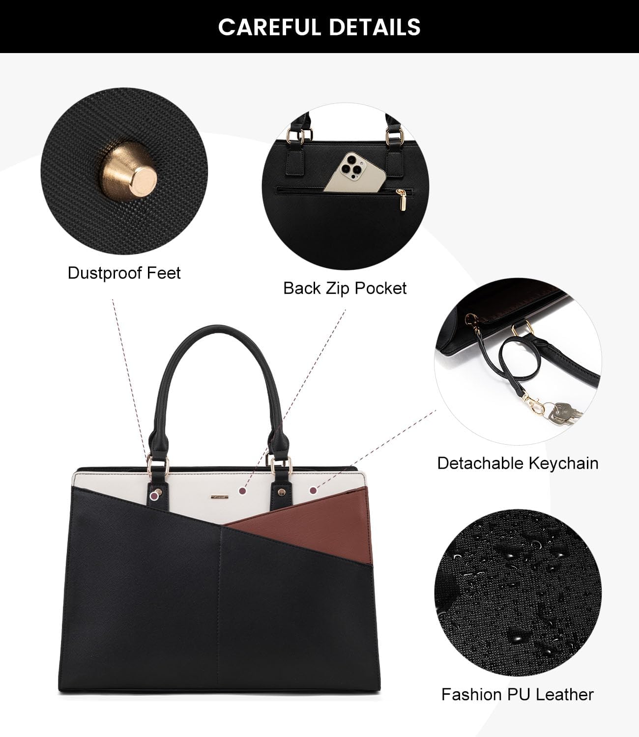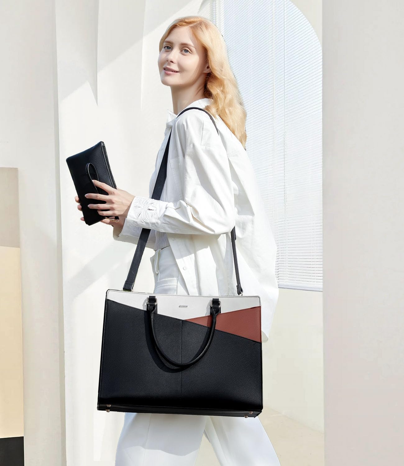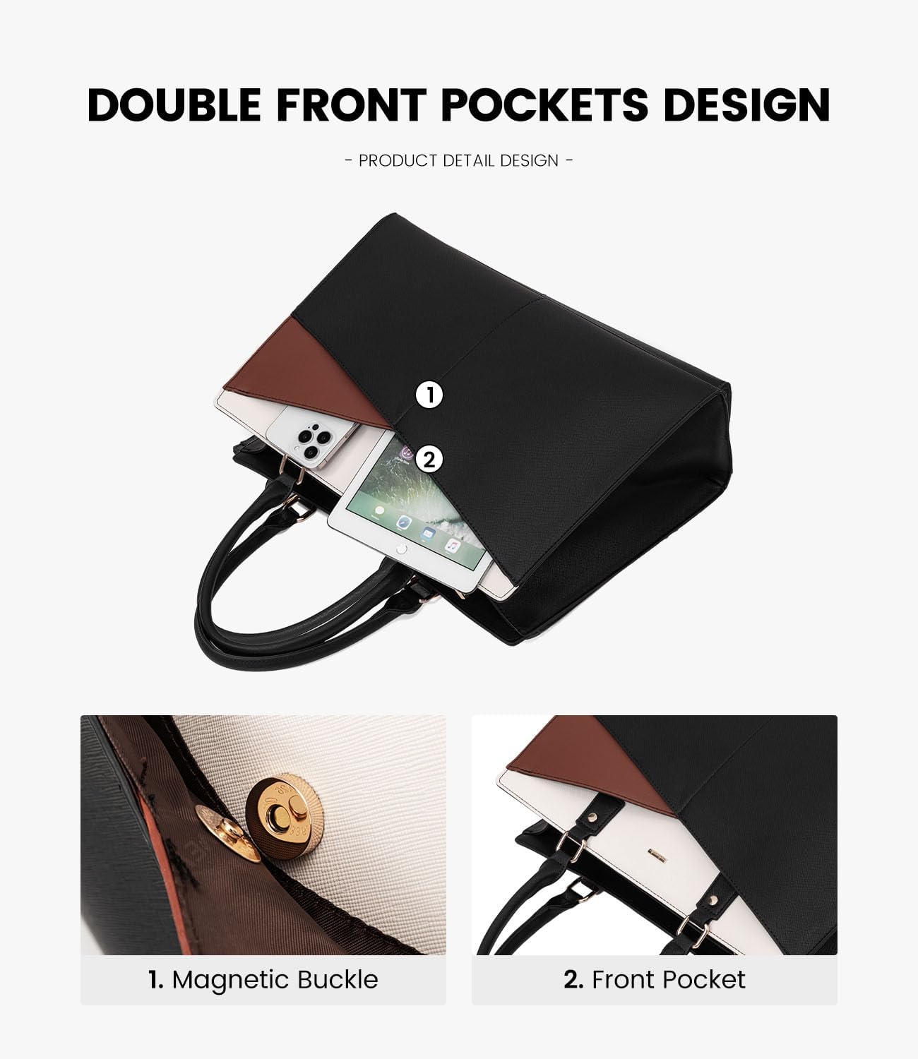【One Bag Fits all Occasion】The elegant and unique design makes it very suitable for work, office, meeting, business trip, travel, coffee shop and other places as women's briefcase, teacher's handbag purse, computer tote bag or women's messenger bag. Simple color matching are easy to match with various clothing styles.