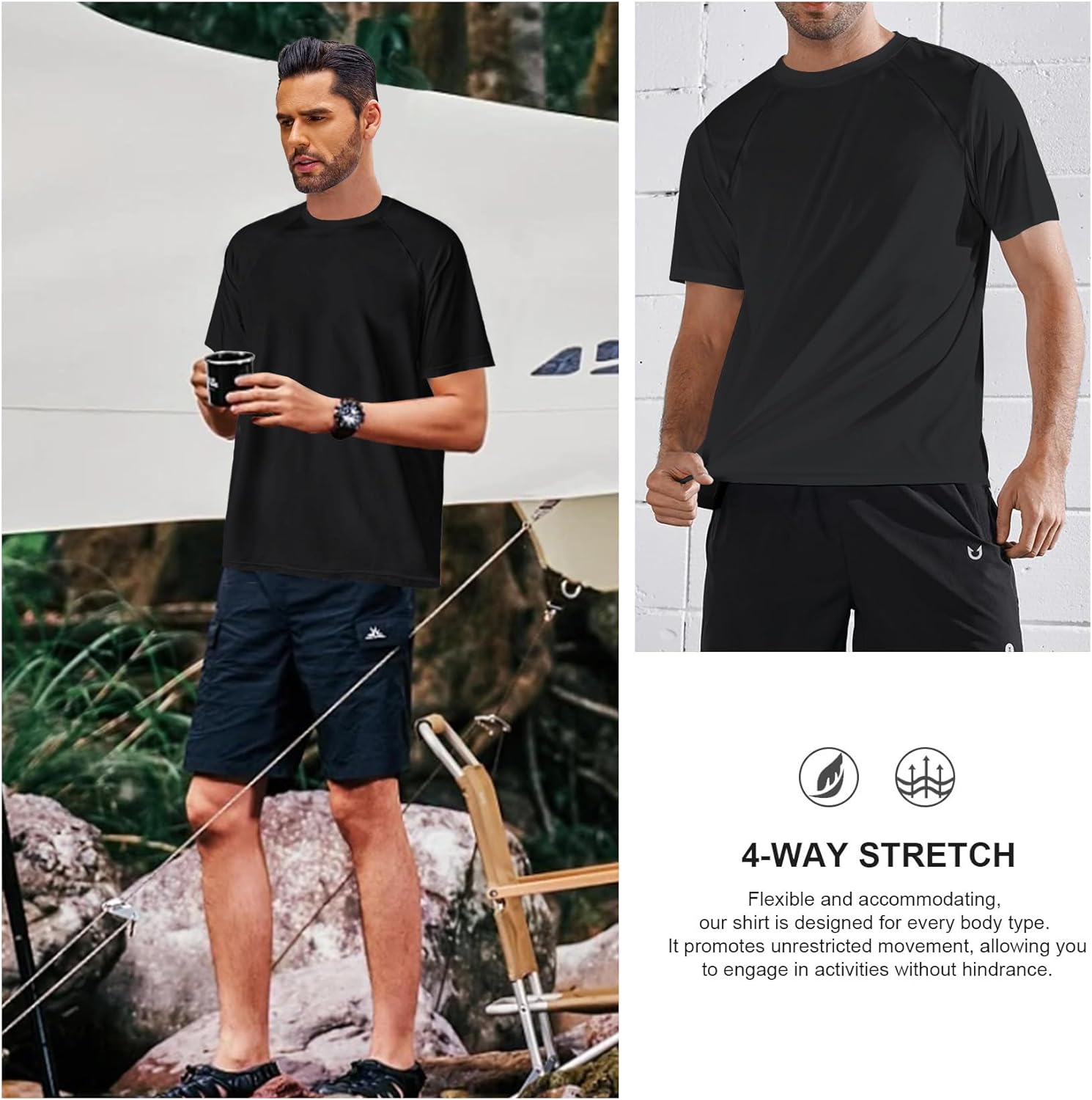 Men's Sun Protection Shirts UV SPF UPF 50+ Swim Shirt Long Sleeve Quick Dry Lightweight Sun Shirt Hiking Fishing Running