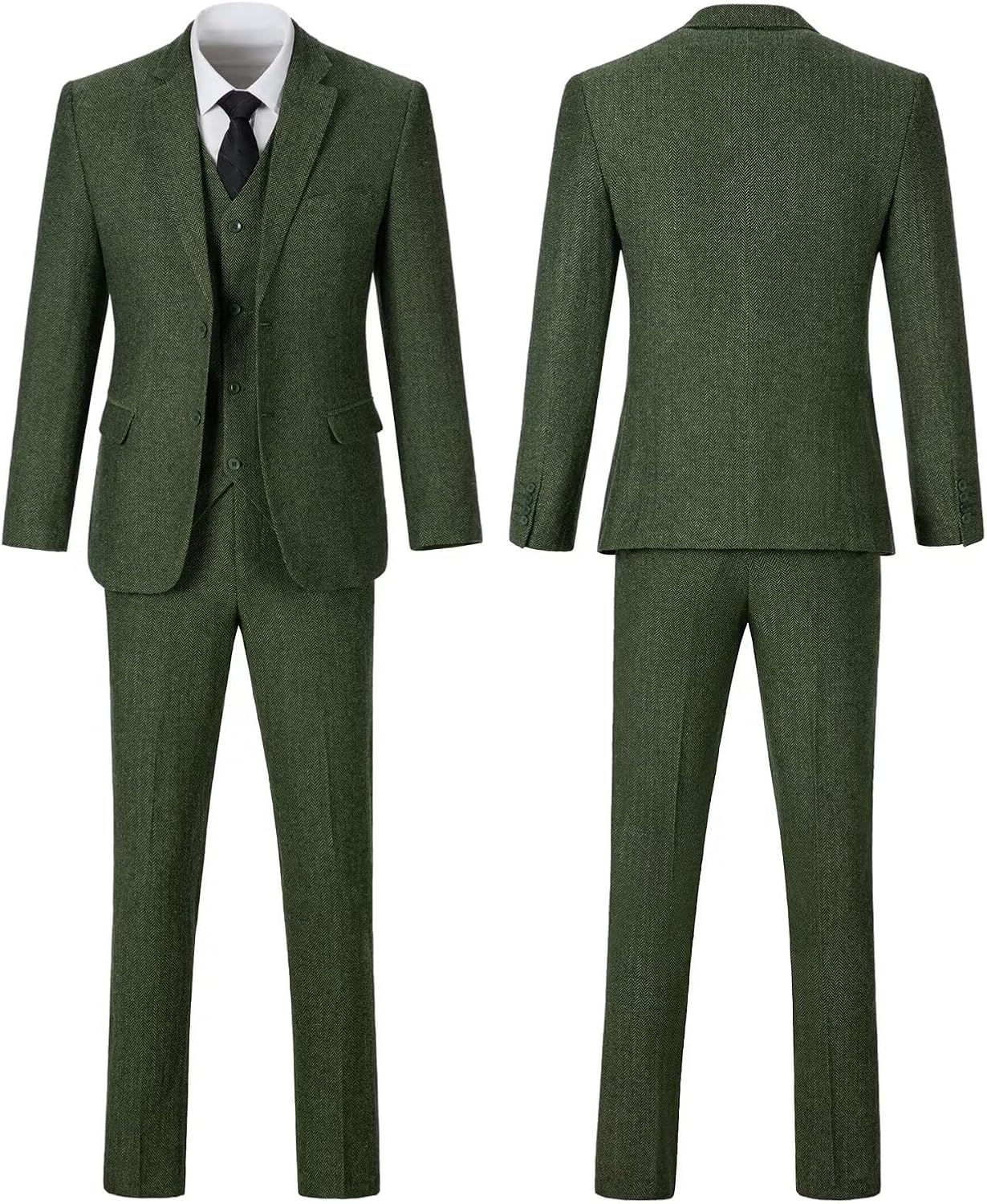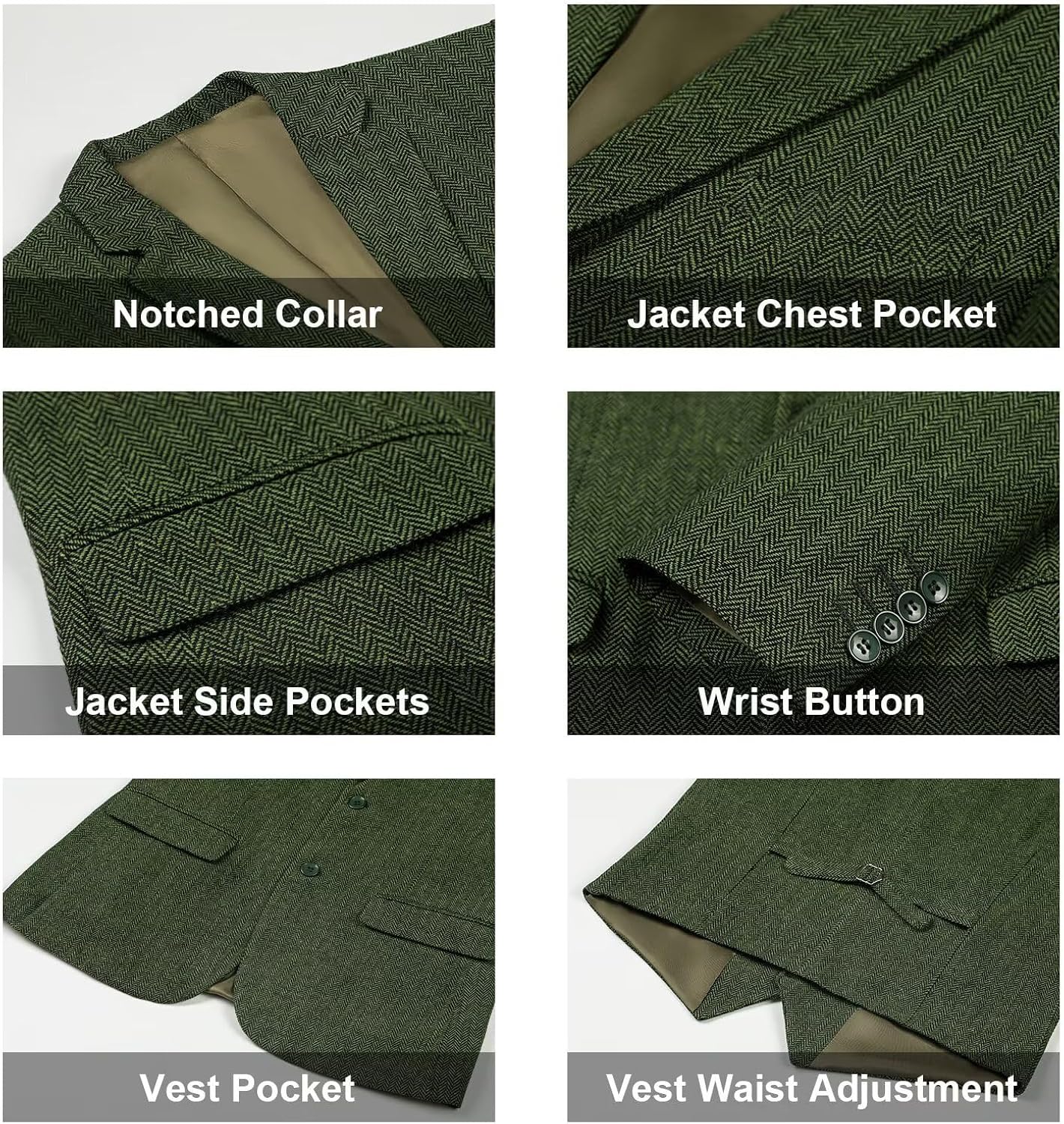 You can get:Jacket + Vest + Pants ,3-Piece Tweed Suit.