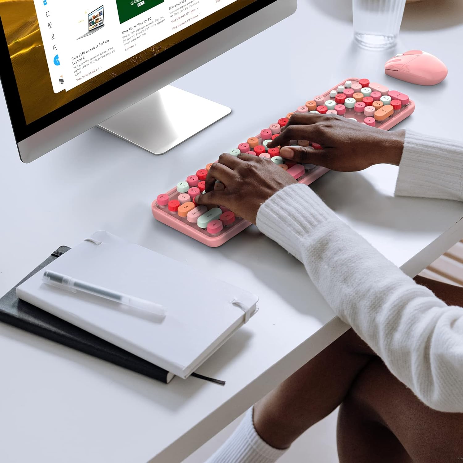 【Pink Wireless Keyboard and Mouse Set】most popular color of 2022, to attract more people's eyes, give you a different vision, enjoy a different keyboard experience, create a colorful desk, and be a pleasant mood for you!