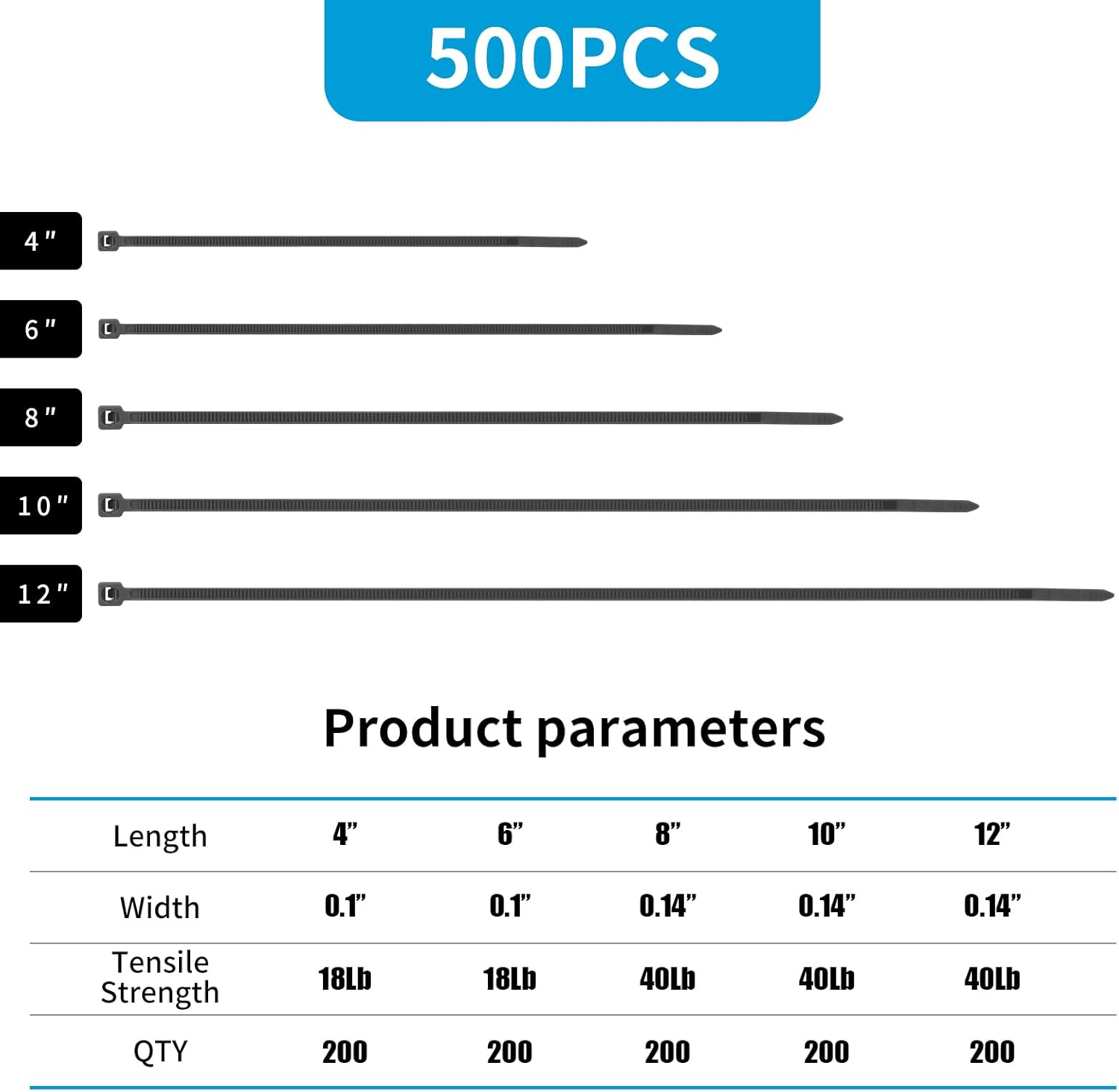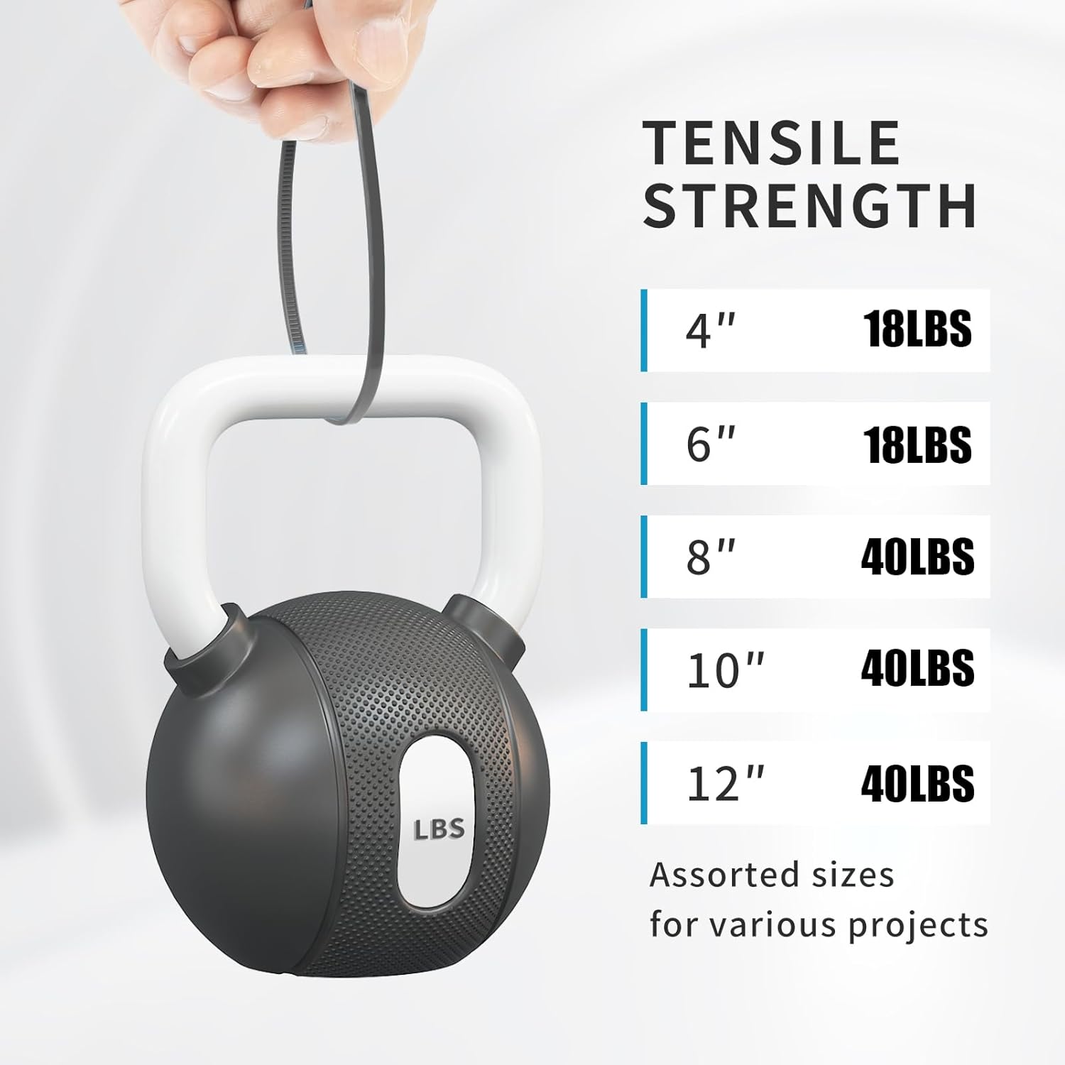 【Zip ties Assortment】International Standard Specifications:Multipack of 1000 PCS 4+6+8+10+12 inch Silver Cable Ties Width 2.5mm/0.1inch-18lbs, 3.6mm/0.14inch-40lbs