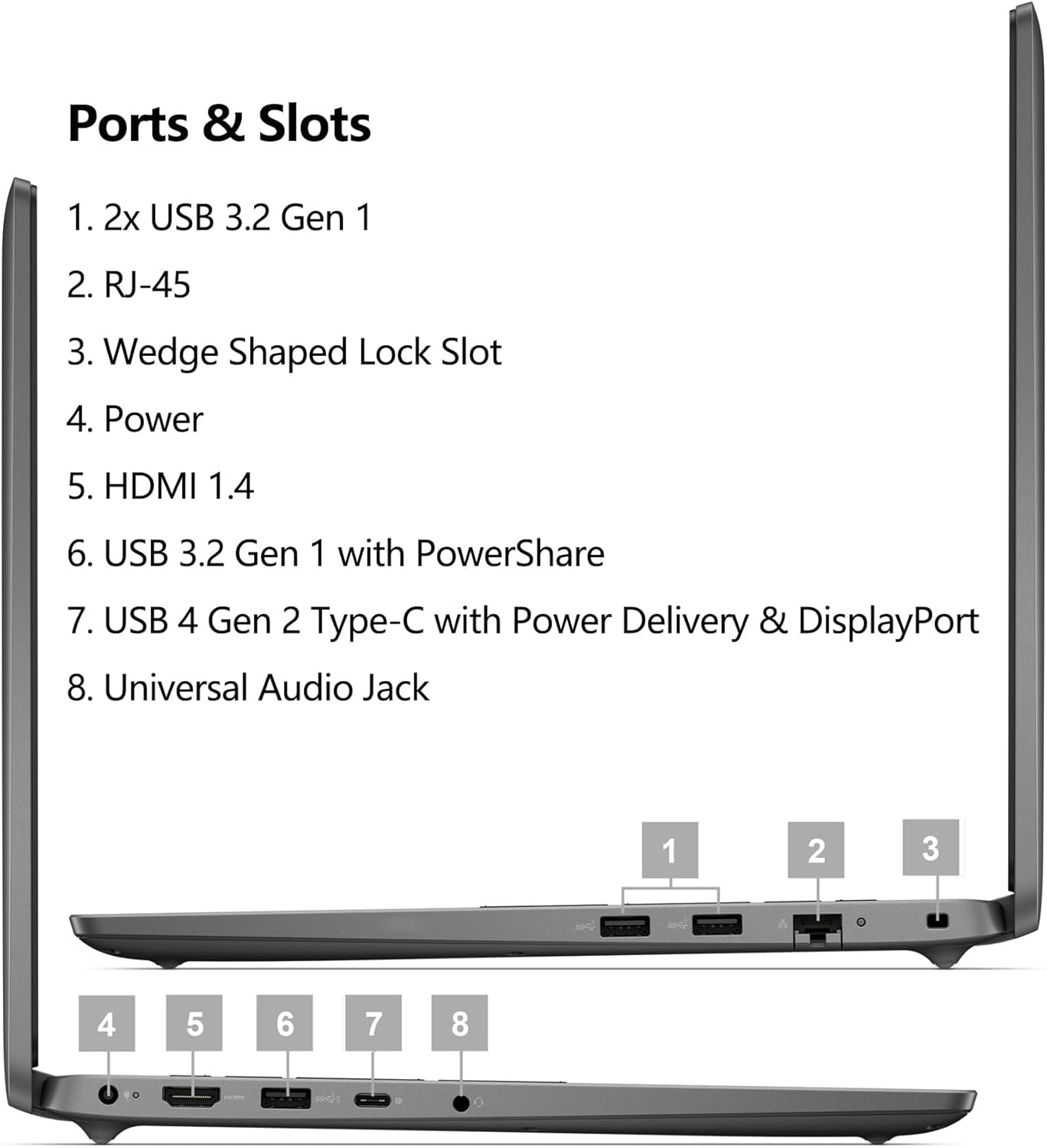【Tech Specs】 Connect a variety of devices to the Latitude with an array of ports, including 1 USB 4 Gen 2 Type-C with Power Delivery & DisplayPort, 1 USB 3.2 Gen1 with PowerShare, and 2 USB 3.2 Gen1. You also get a HDMI 1.4 port, supporting external displays with high-quality resolution. Enjoy quality video meetings with the Full HD webcam, dual array microphones, and stereo speakers.
