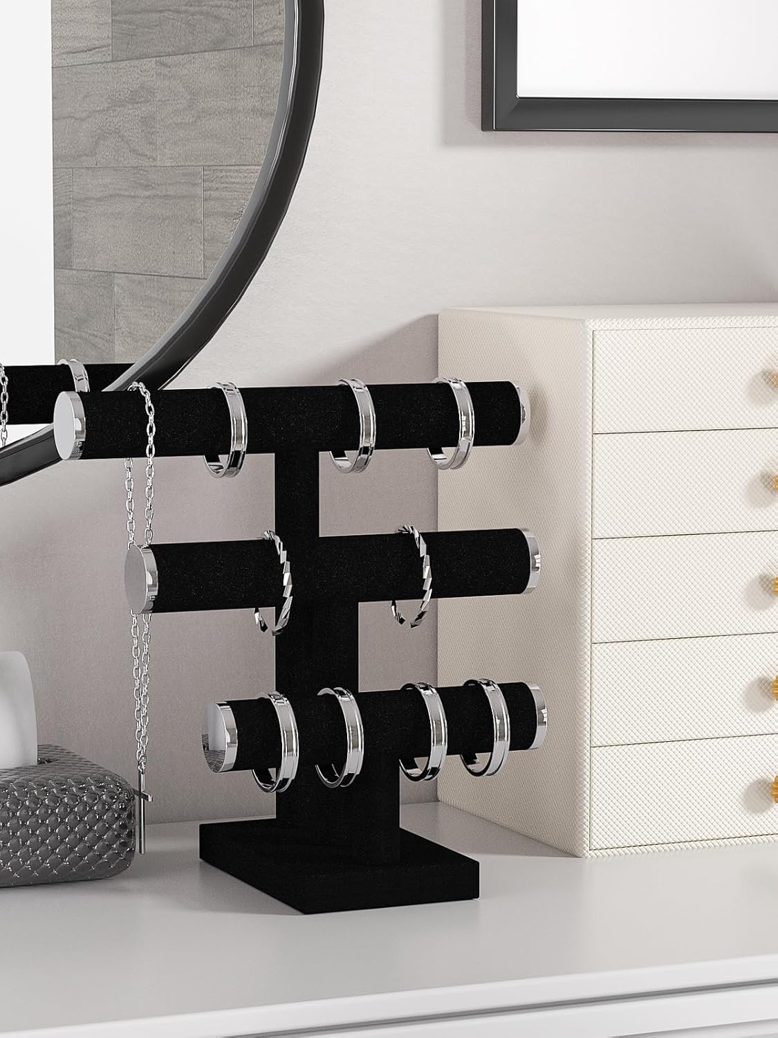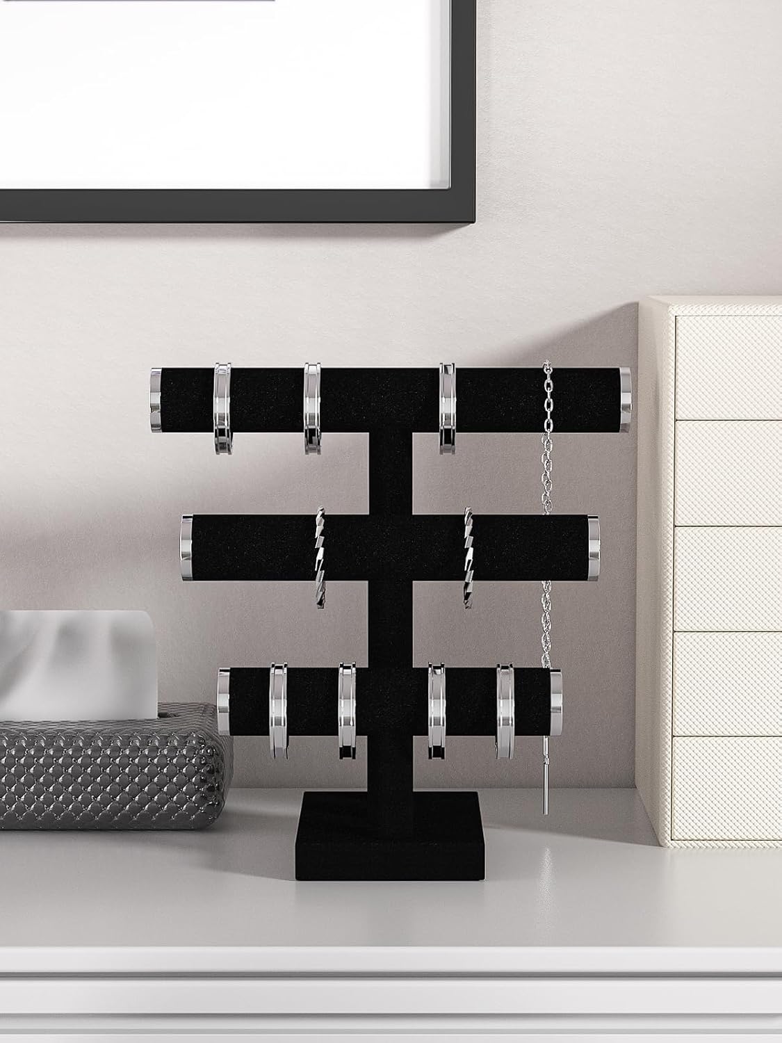 The bracelet organizer stand, made of high quality and soft velvet, can best protect your jewellery from damage, is the perfect rack for jewellery.