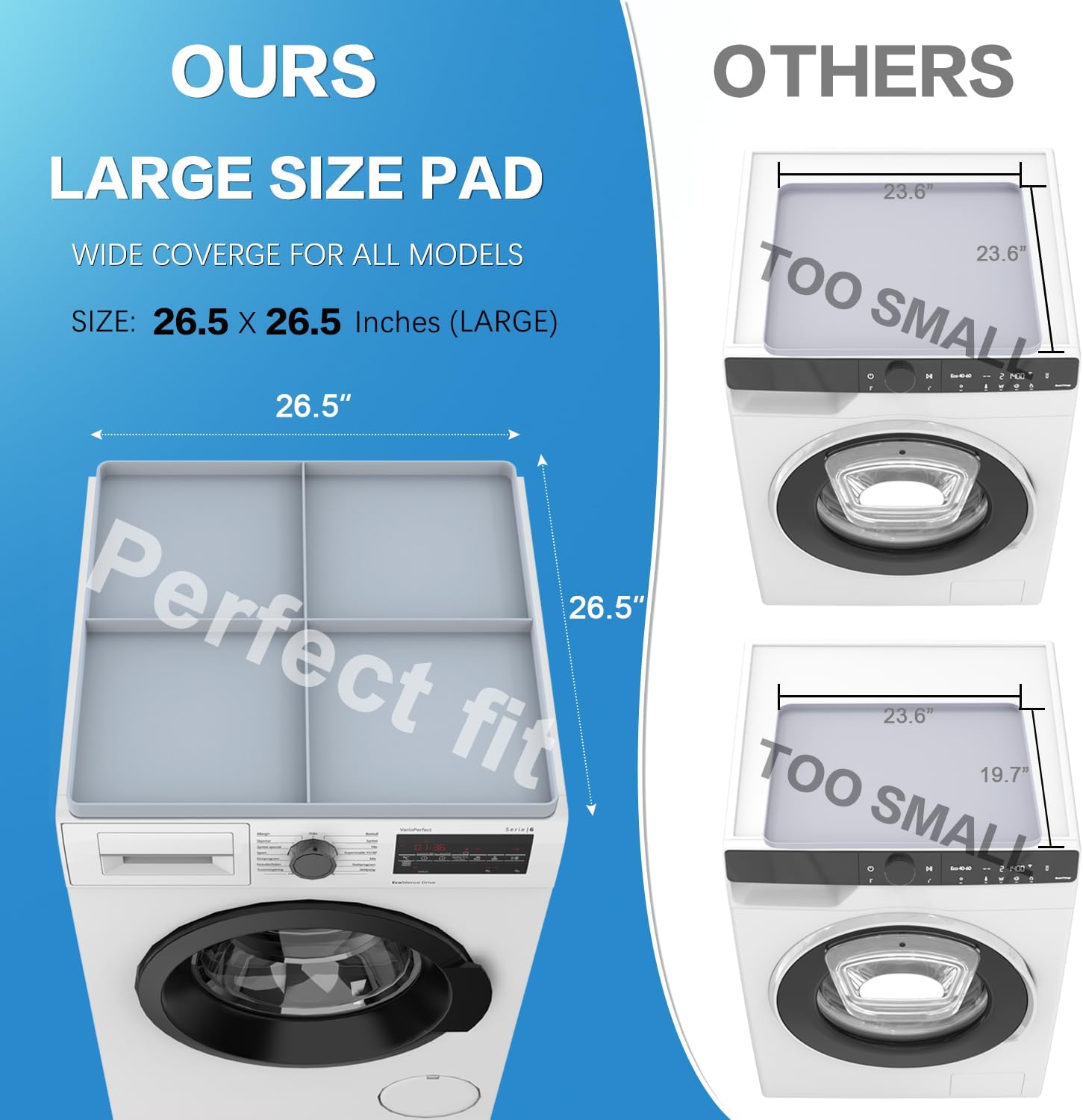 Washer Dryer Top Protector Mat, 26.5“ x 26.5“ Protective Silicone Rubber Mat for Washing Machine or Dryer, Simple Partitio...