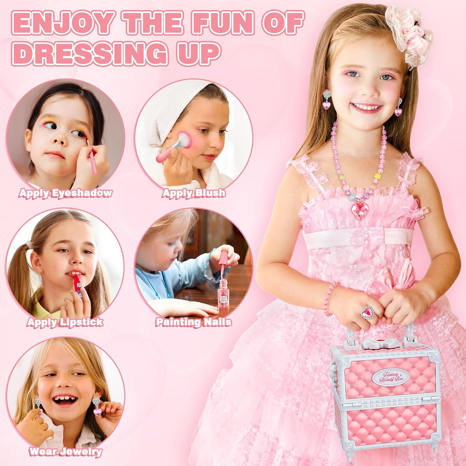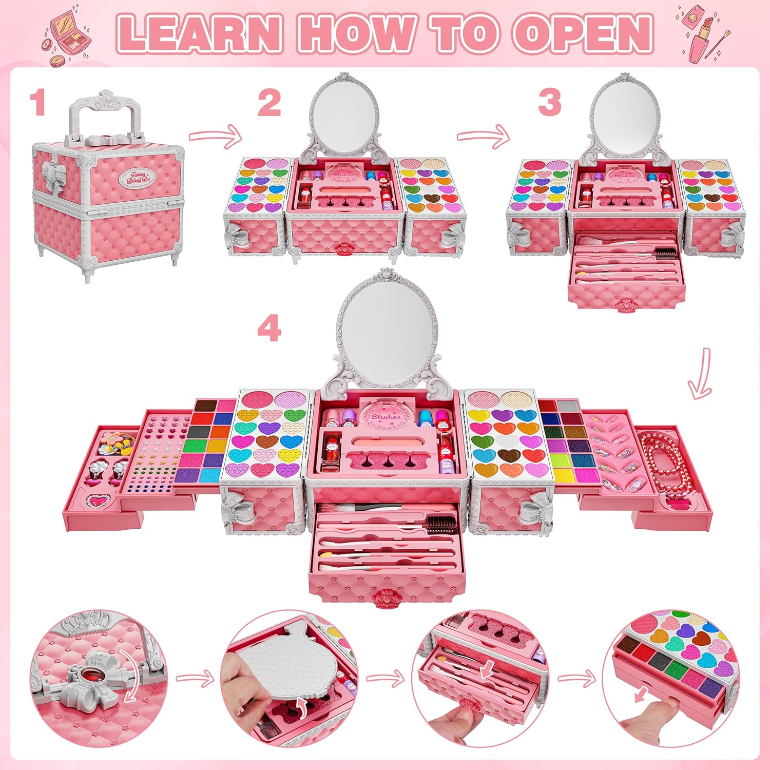 Kids Makeup Kit for Girl: Let your little one’s imagination soar with this enchanting makeup set!it’s perfect for those who want to bring fairy tales to life. Whether it's dressing up as a princess or enjoying play, this makeup kit helps bring out the magic in every girl.