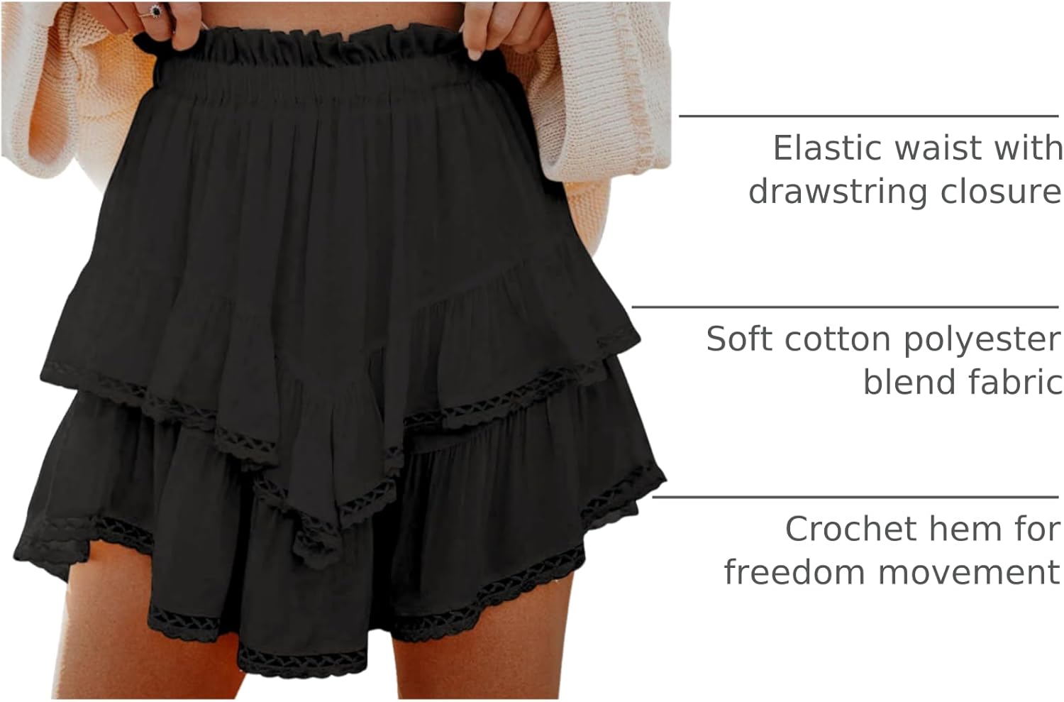 Double layer Ruffle Tiered Design: The flowy preppy shorts for teen girls with elastic waistband has cotton linen fabric, soft and comfy, which does not rid up and doesn’t give you the feeling of granny panties.