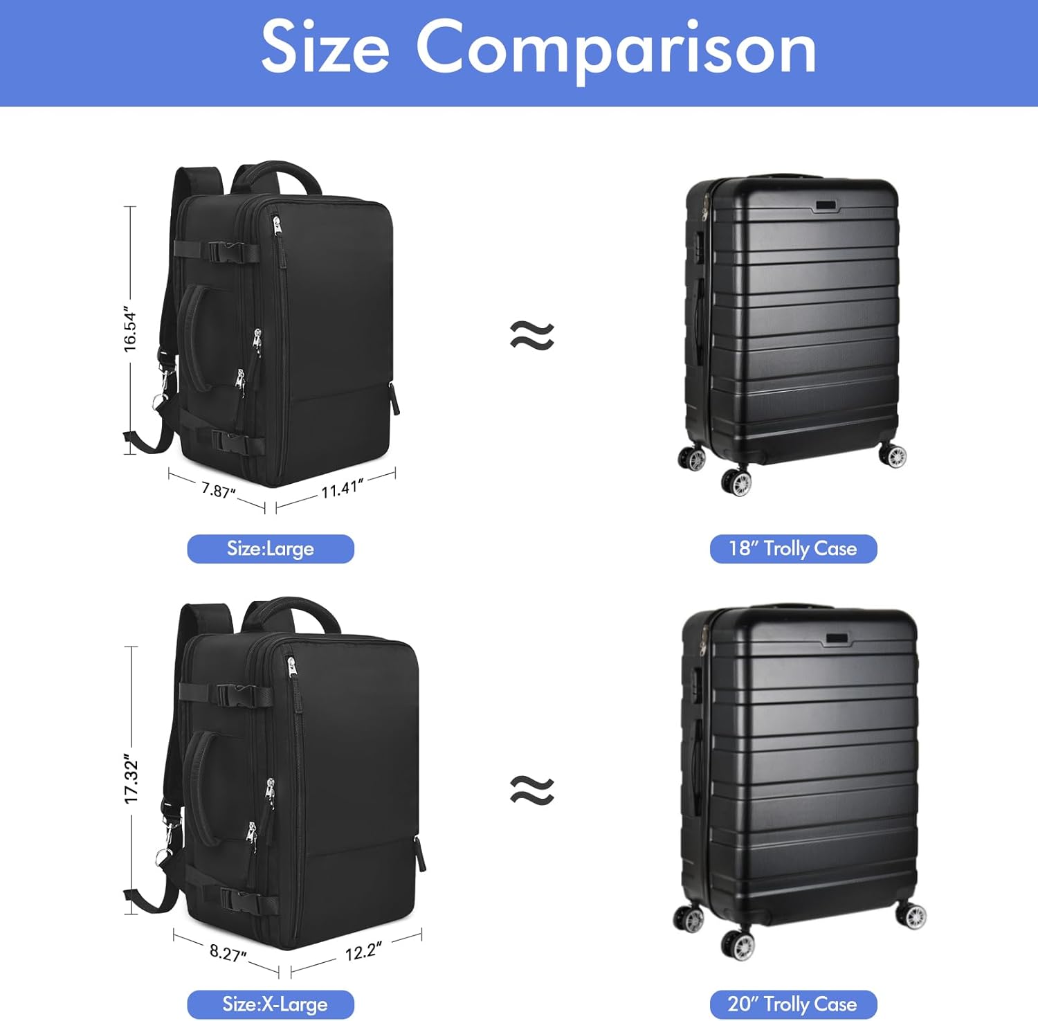 【Flight-approved Travel Backpack】Size:18.5*12.8*8 inch inches. Weight:1.19kg/2.62lb Rinlist travel backpack is meticulously crafted to conform to airline standards. This feature saves time and eliminates the hassle of waiting in long lines for baggage check-in. Its compact design also allows for easy placement in luggage rack or under seats